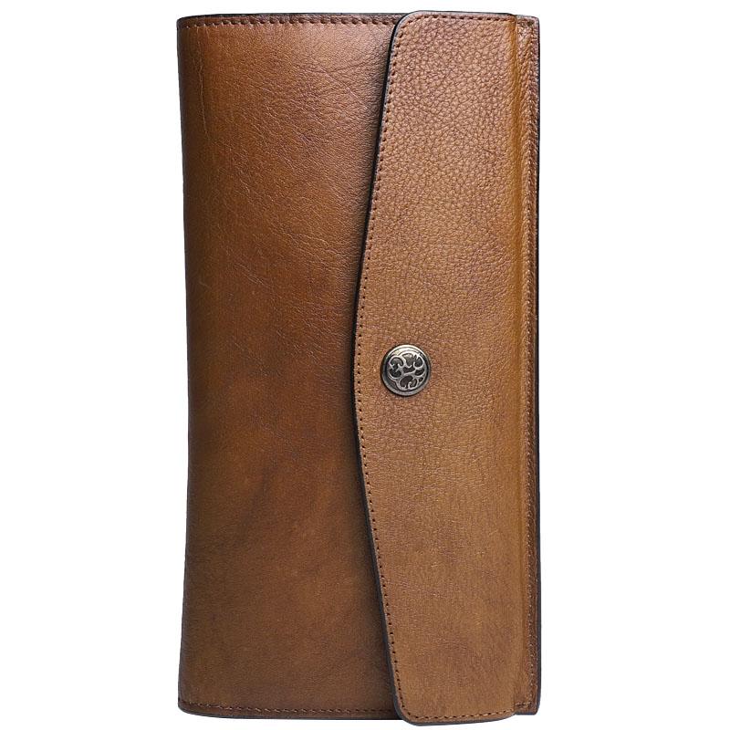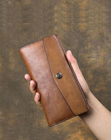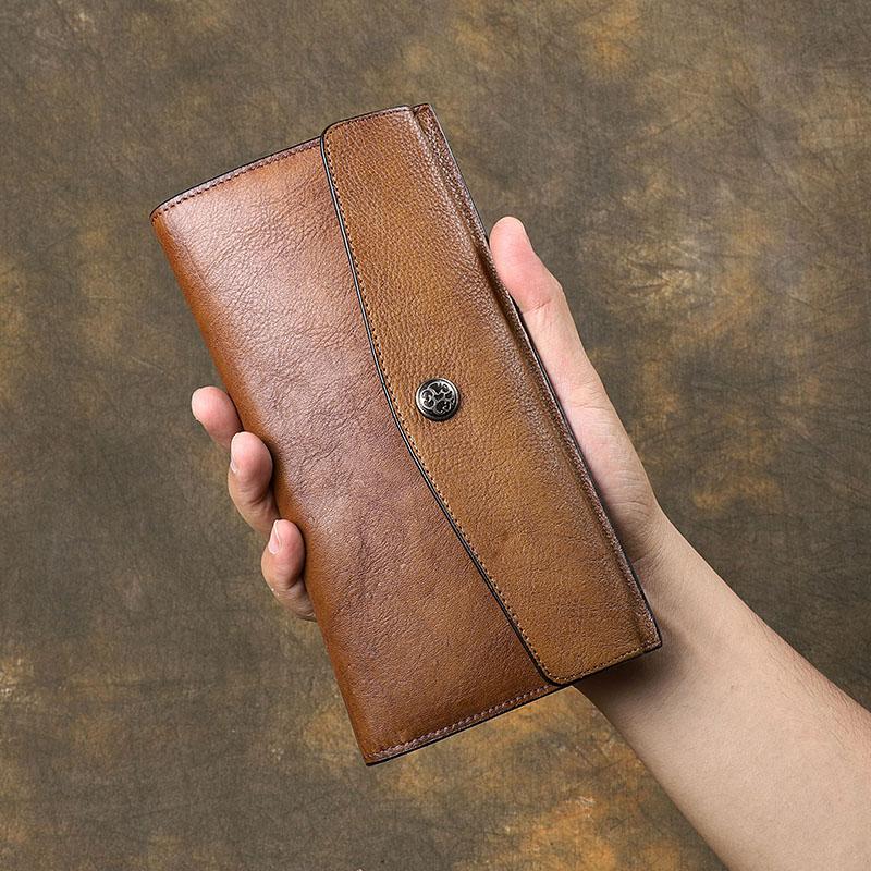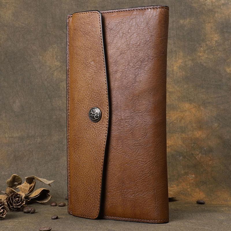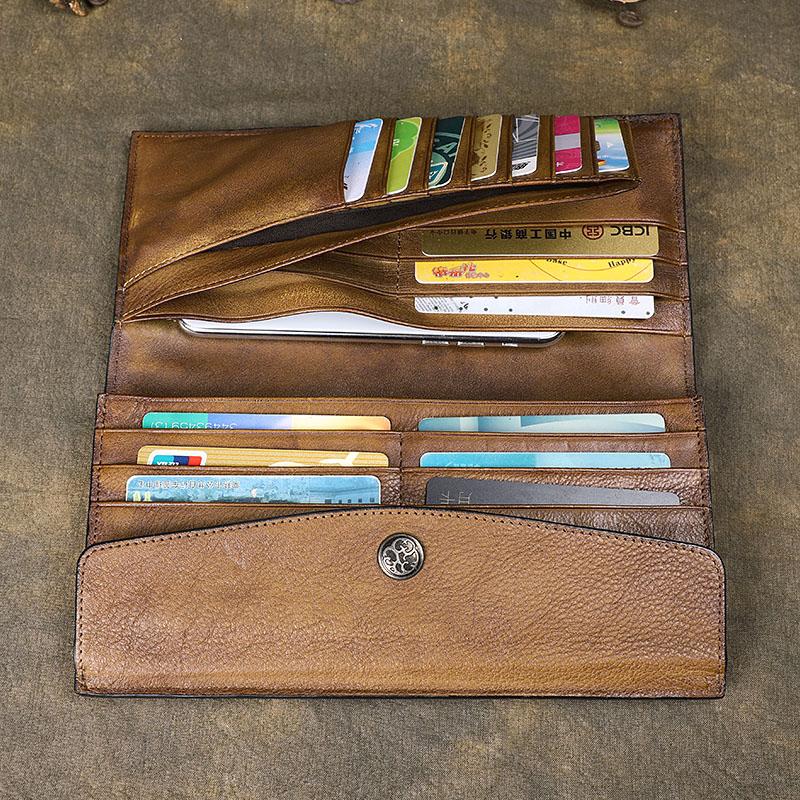 Design: Retro Leather Mens Cool Long Brown Multi-function Leather Envolpe Wallet Trifold Clutch Wallet for Men