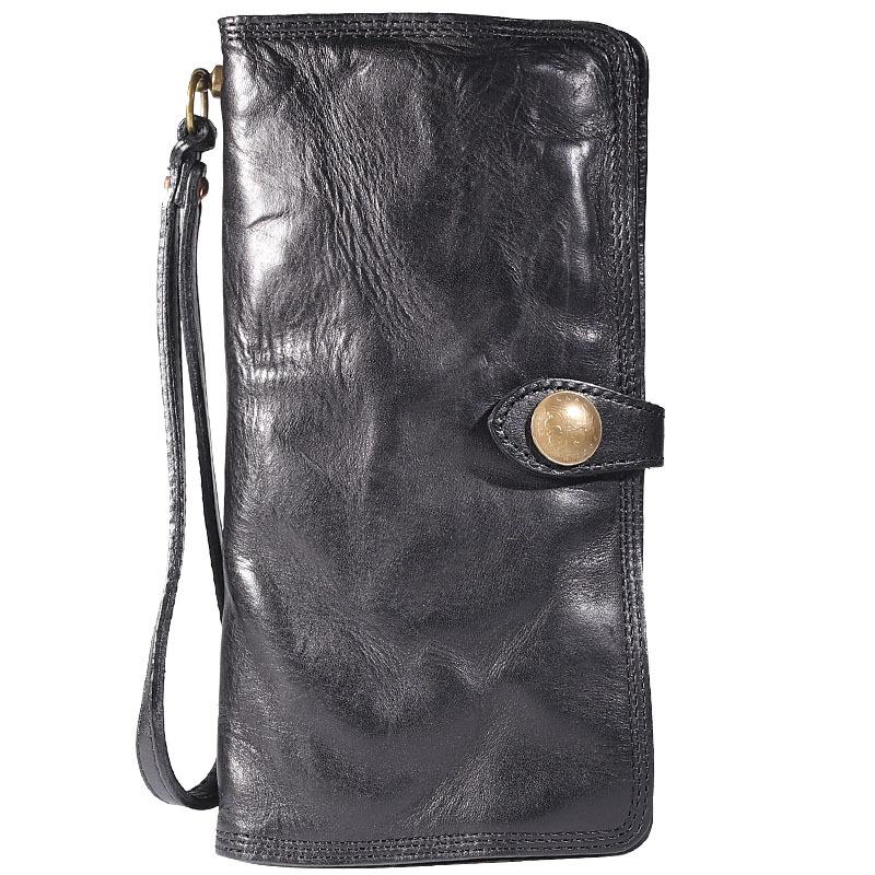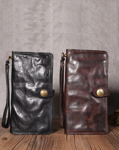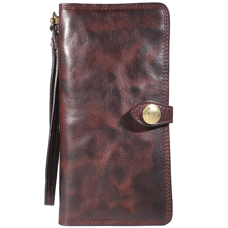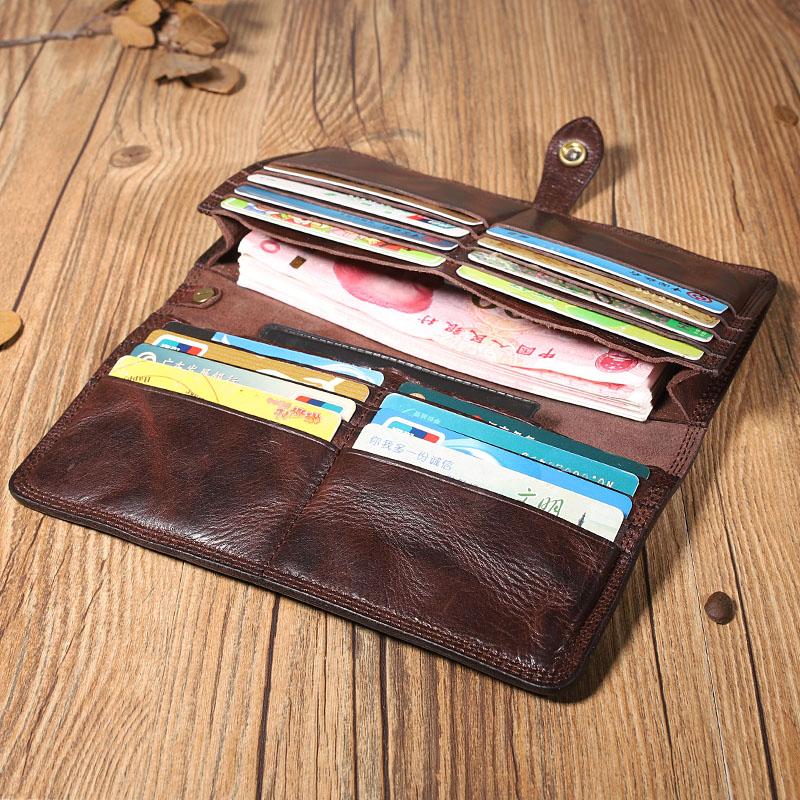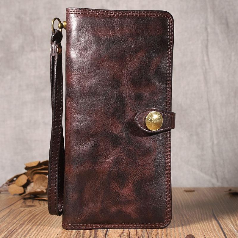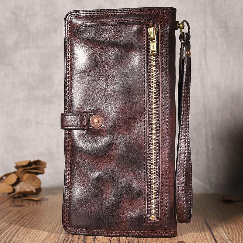 Style: Retro Leather Mens Cool Long Multi-function Dark Brown Leather Wallet Zipper Wristlet Clutch Wallet