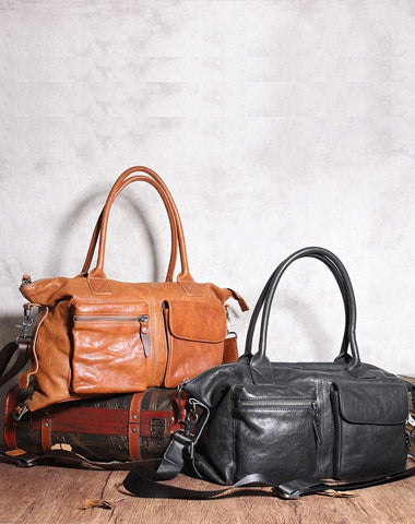 Design: Retro Leather Mens Large Black Weekender Bag Brown Duffle Bag Luggage Bag for Men