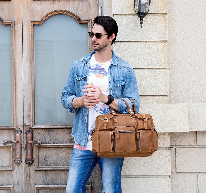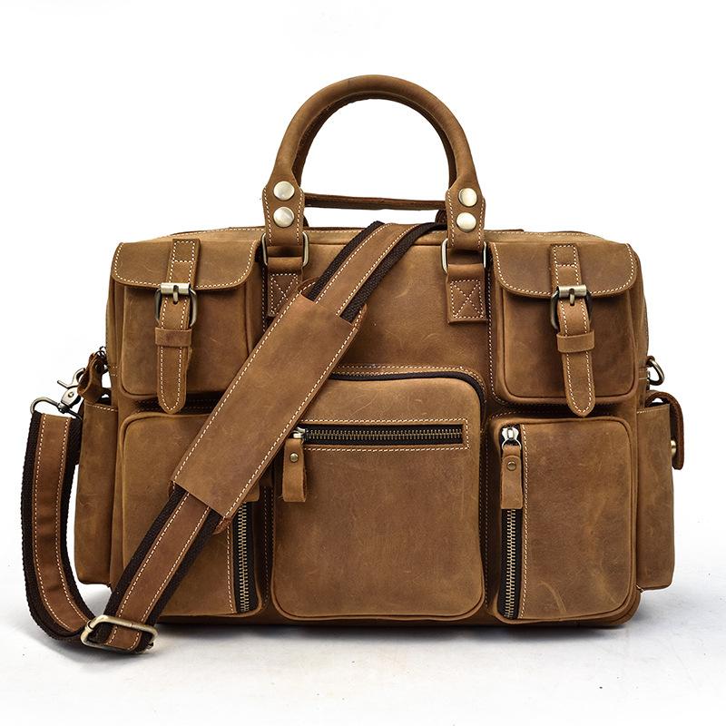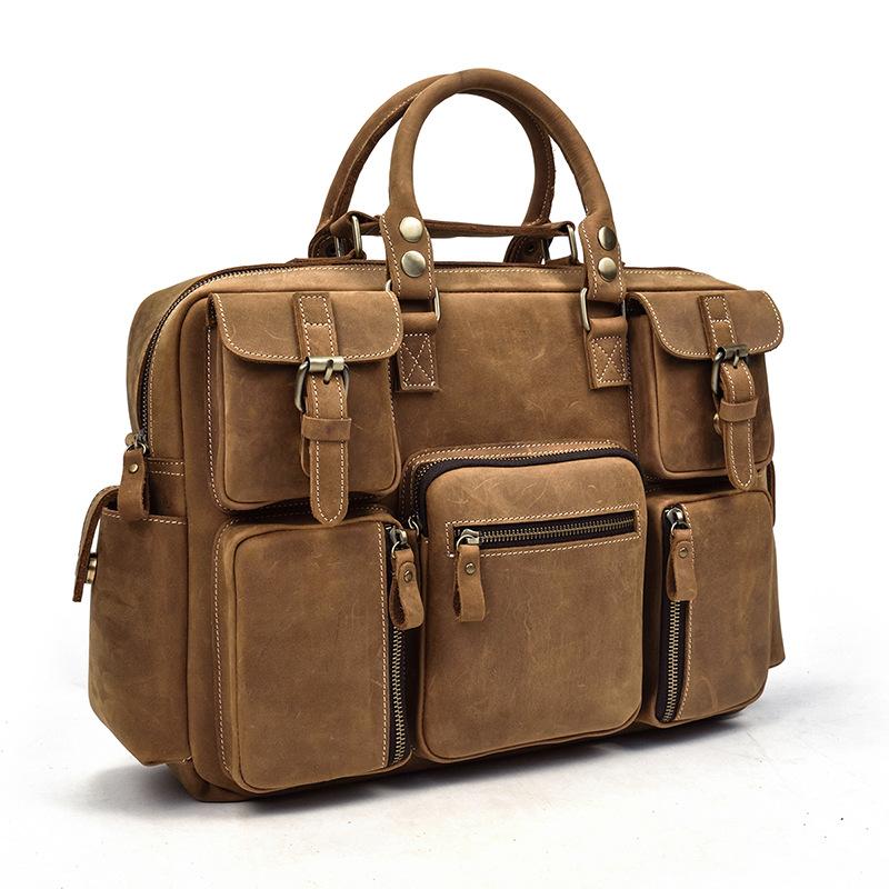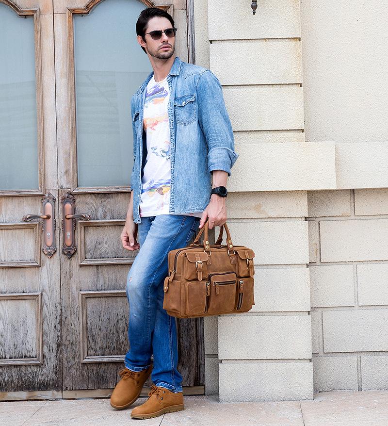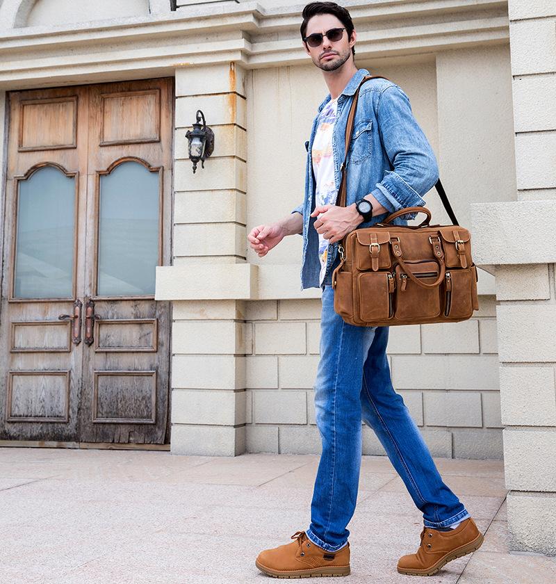 Design: Vintage Leather Men's Travel Bag Business Handbag Laptop 14inch Briefcase For Men