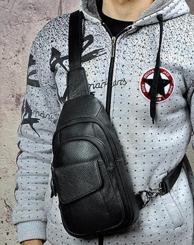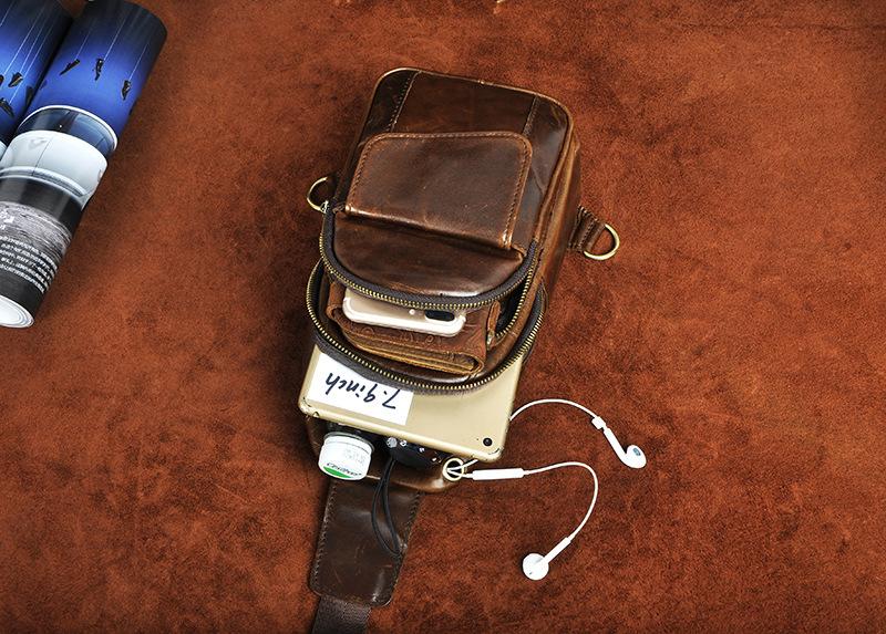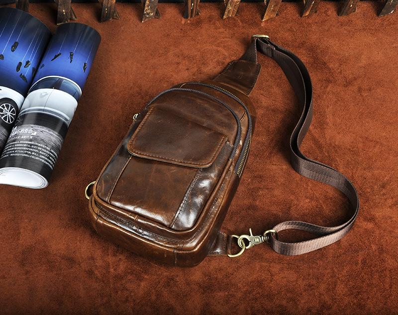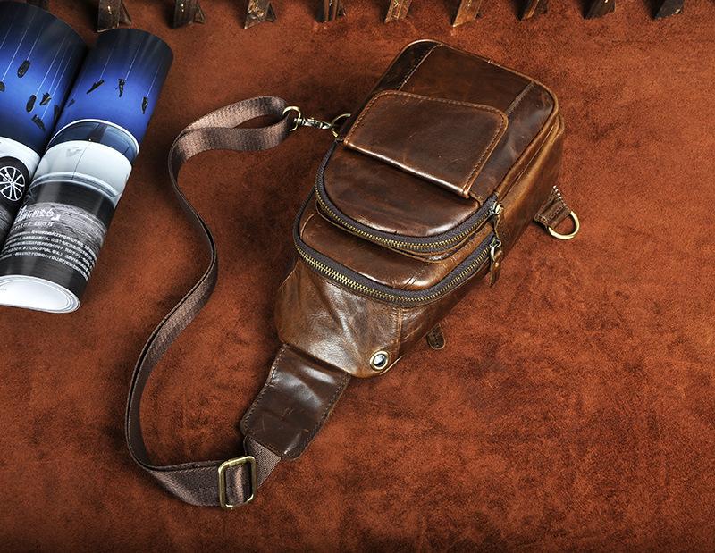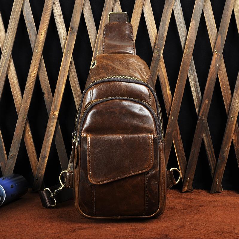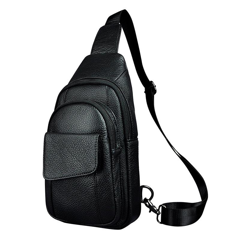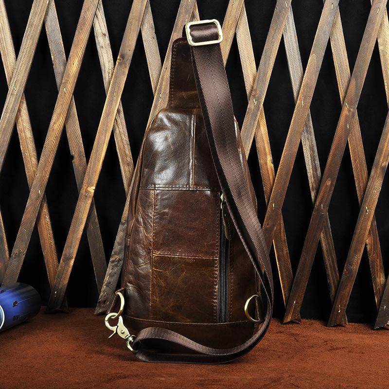 Design: Fashion Black Leather Men's Sling Bag Chest Bag Brown One Shoulder Backpack For Men