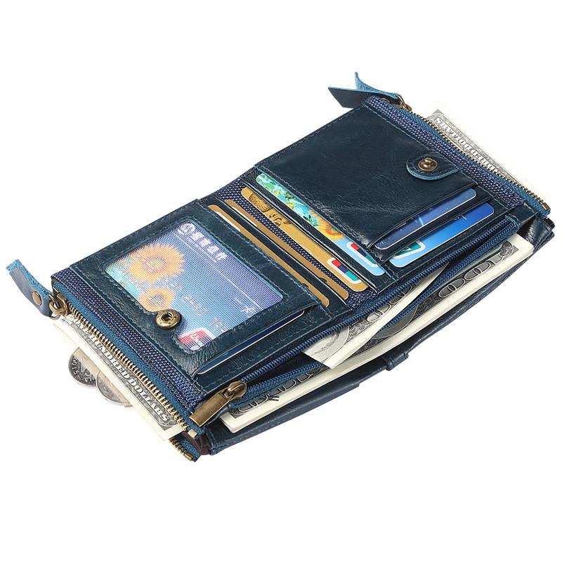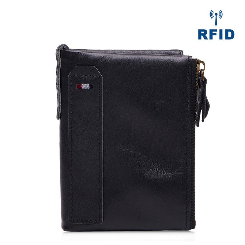 Style: RFID Brown Leather Men's Small Blue Bifold Business Wallet Black Slim billfold Wallet Coin Purse For Men
