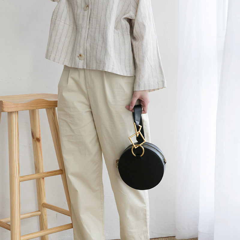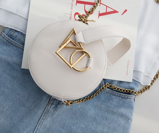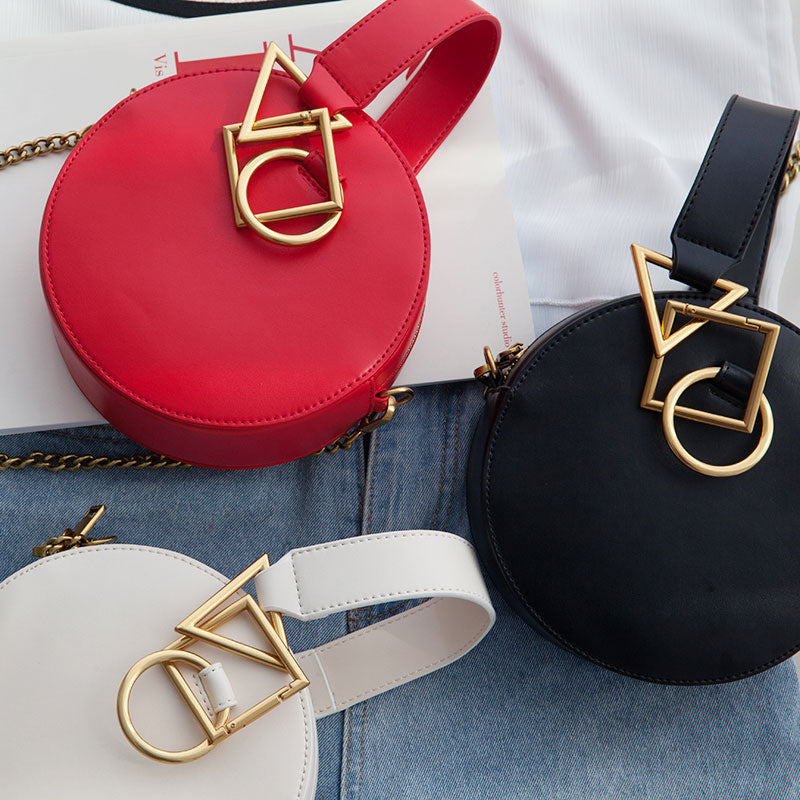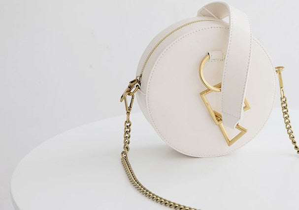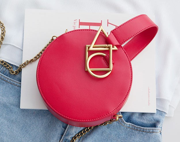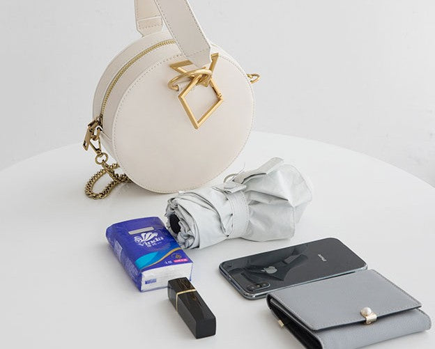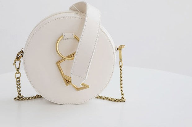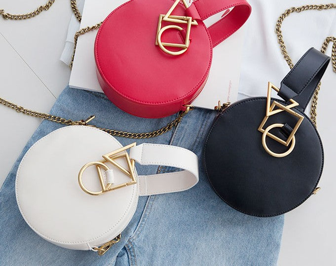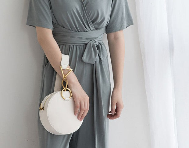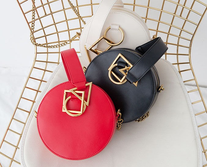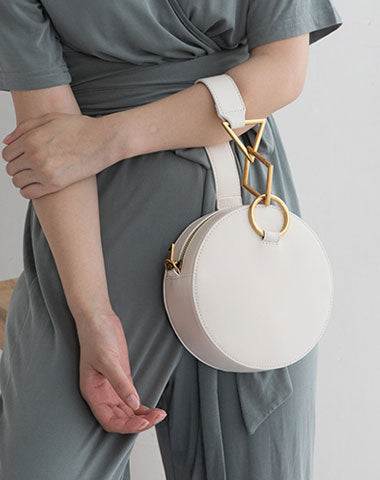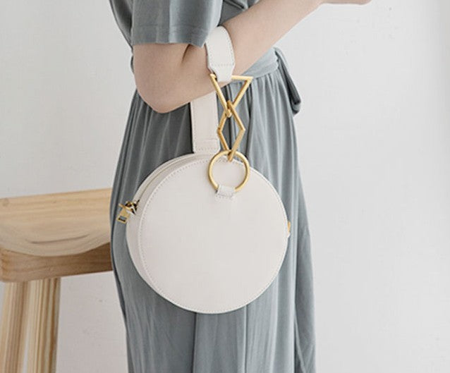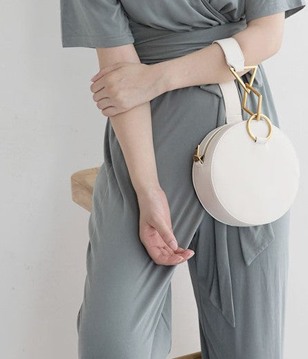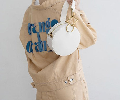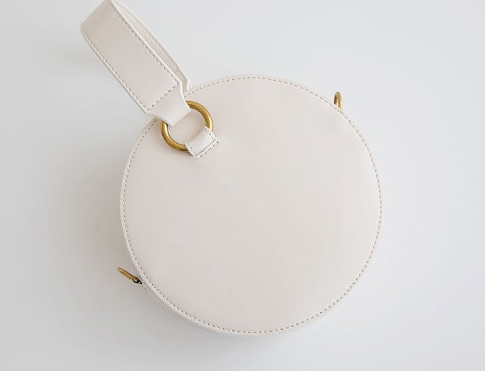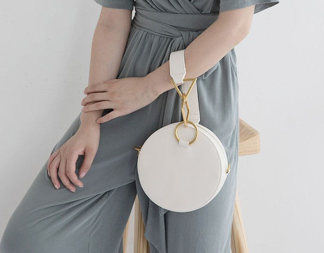 Design:Round Leather Womens Stylish Circle Handbag Round Purse for Women