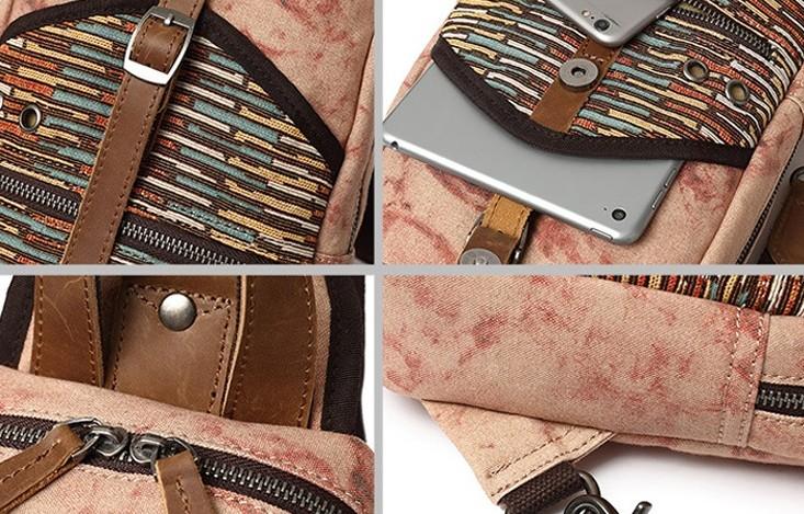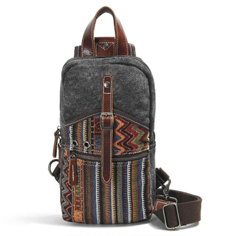 Design: Cool Canvas Leather Mens Sling Bag Chest Bag One Shoulder Pack for men