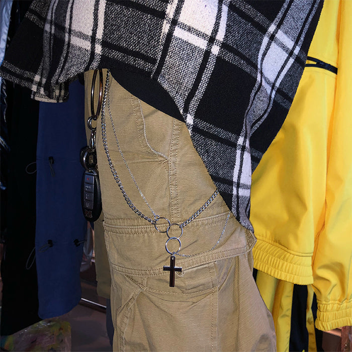 Silver Mens Cross Wallet Chain Double Biker Wallet Chain Unique Double Necklace Chain For Women