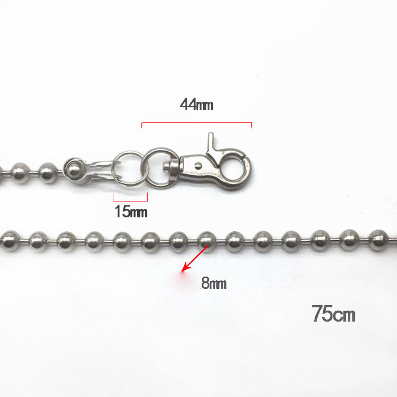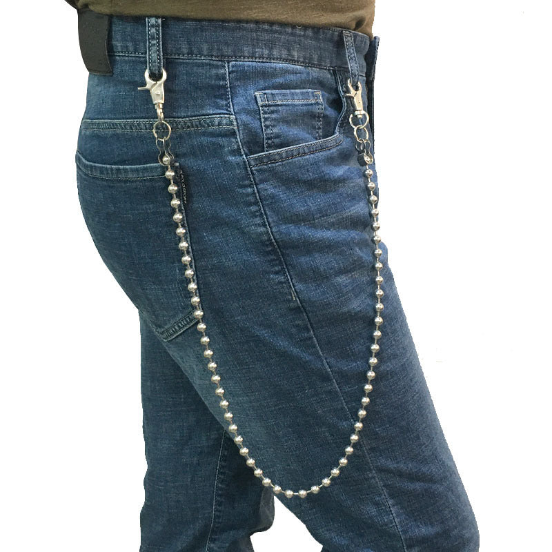 Style: Silver Mens Long Bead Wallet Chain Biker Wallet Chain Bead Silver Pants Chain For Men