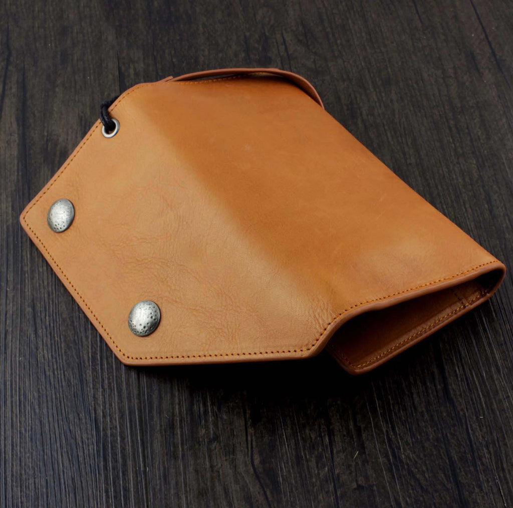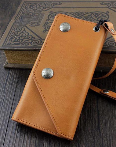 Design: Badass Brown Leather Men's Trifold Biker Wallet Biker Chain Wallet Long Wallet with Chain For Men