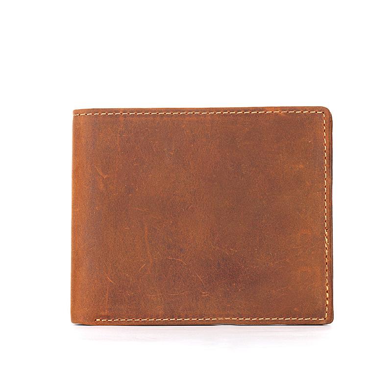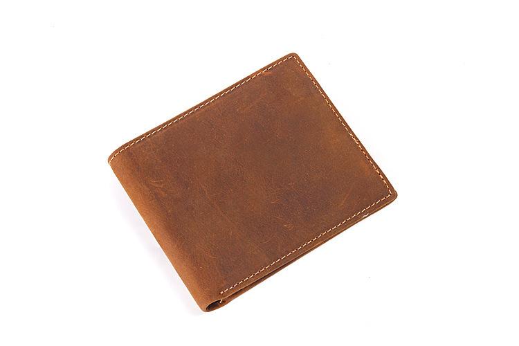Design: Slim Brown Leather Men's Bifold Small Wallet billfold Front Pocket Wallet For Men