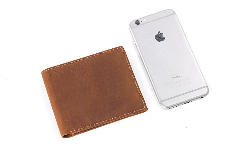 Style: Slim Brown Leather Men's Bifold Small Wallet billfold Front Pocket Wallet For Men