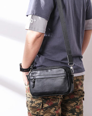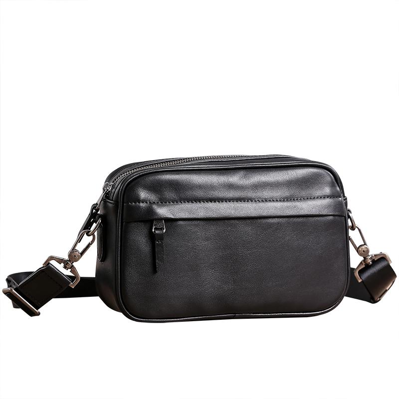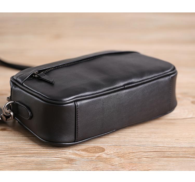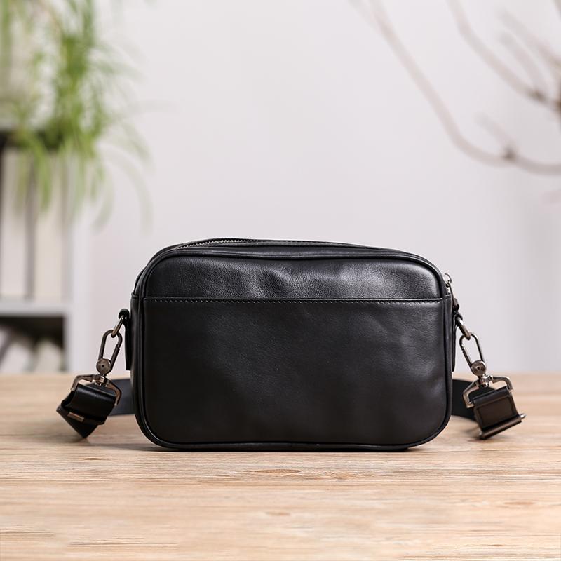 Design: Simple Black Leather MENS 8 inches Side Bag Black Messenger Bag Courier Bag For Men