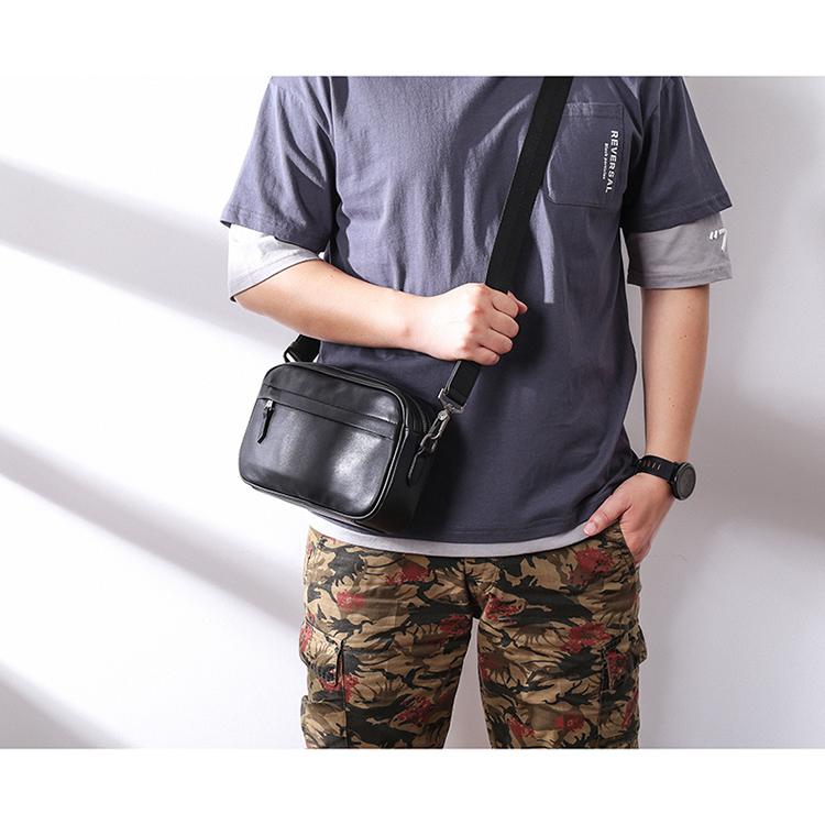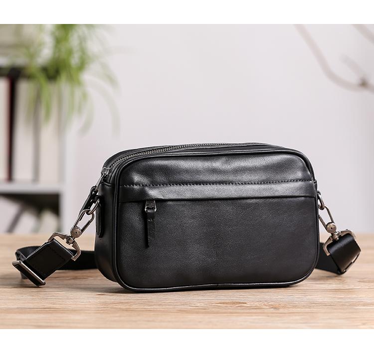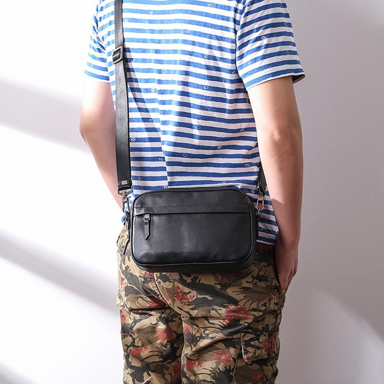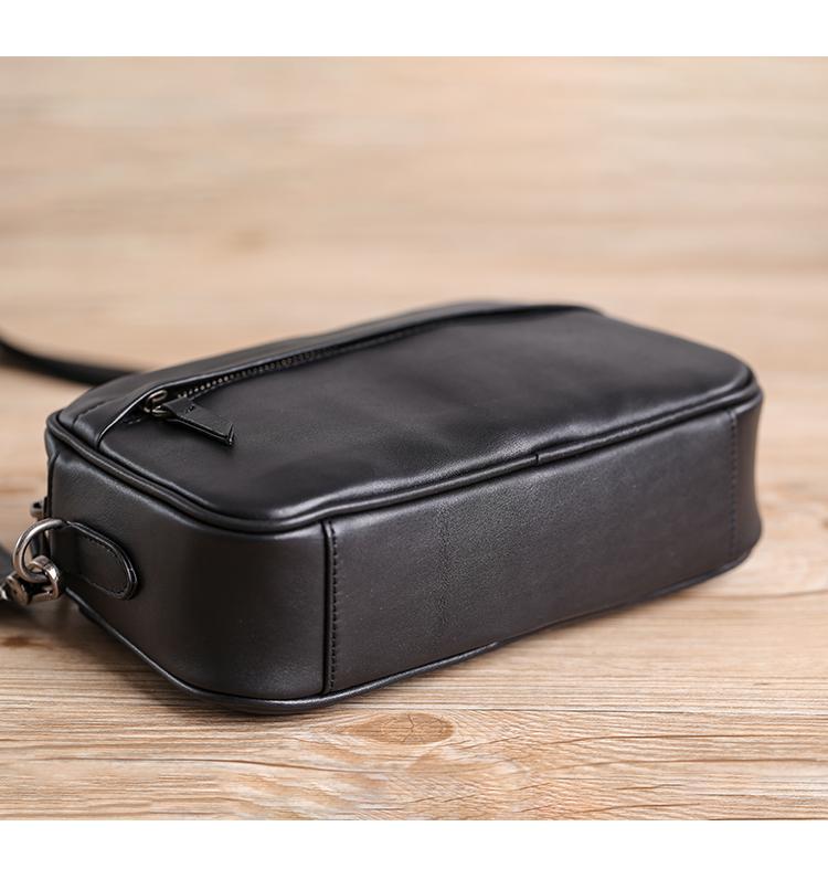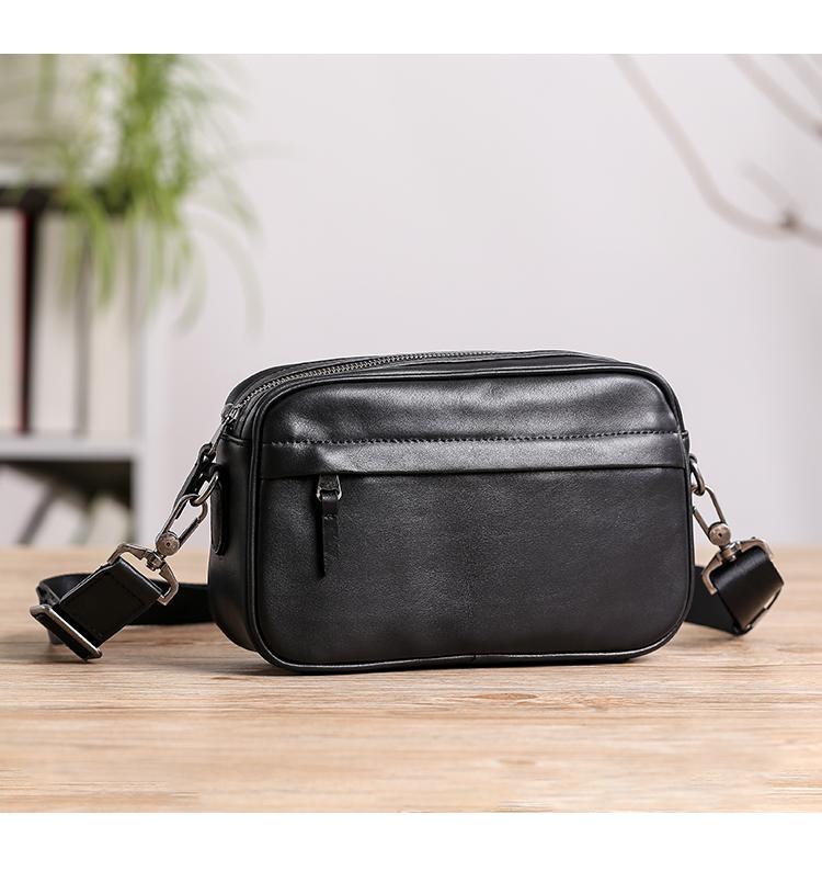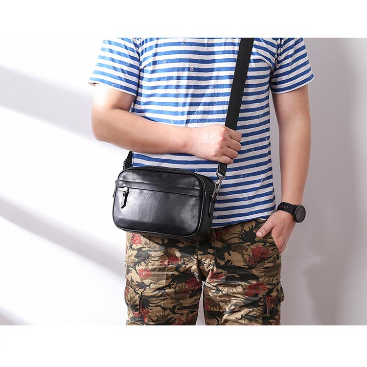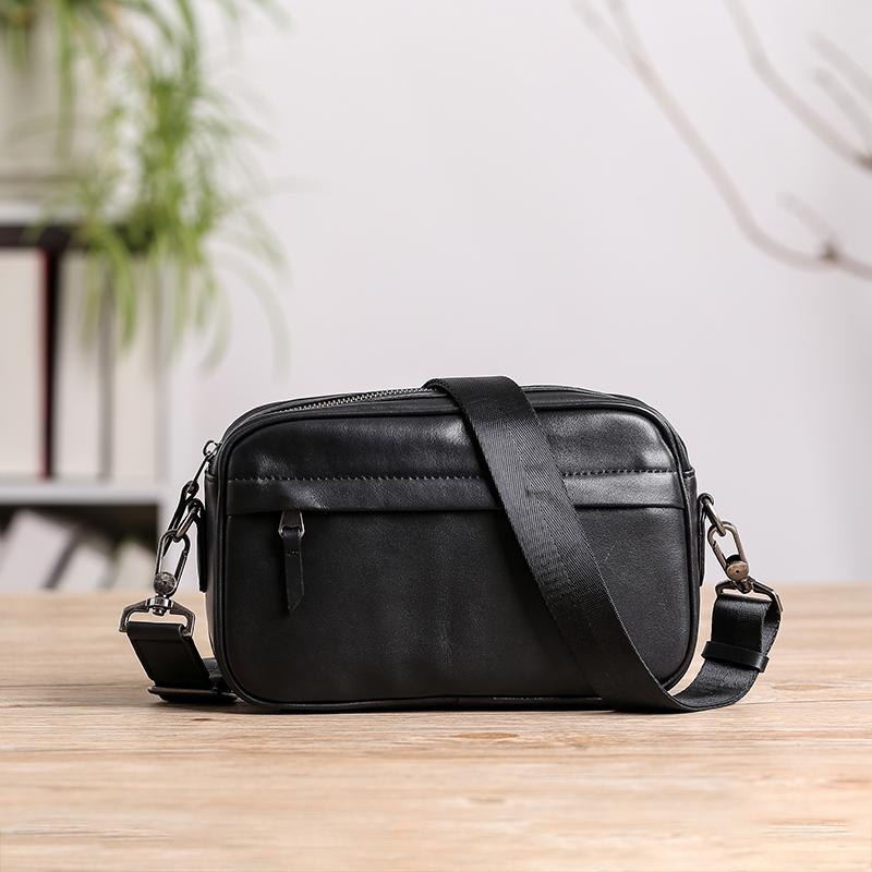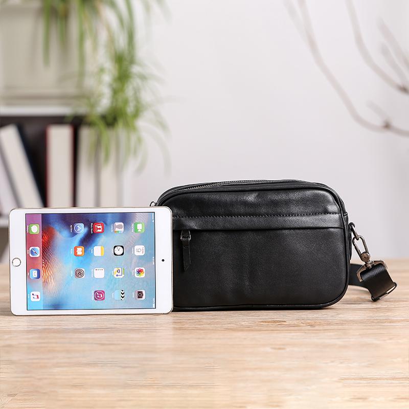 Style: Simple Black Leather MENS 8 inches Side Bag Black Messenger Bag Courier Bag For Men