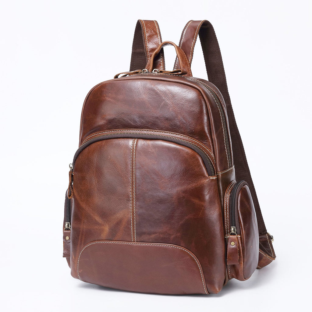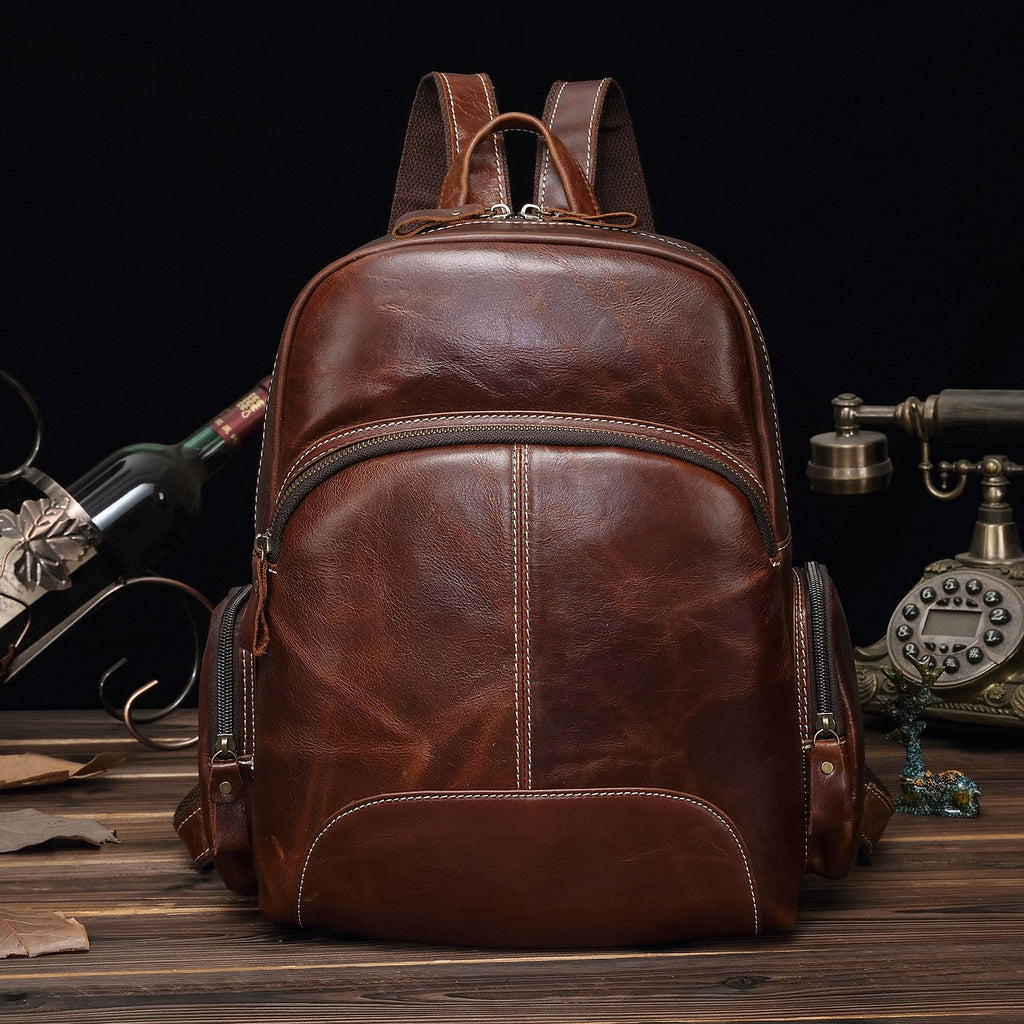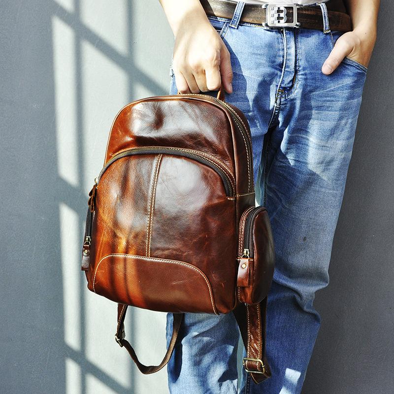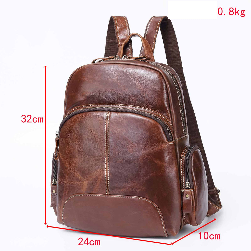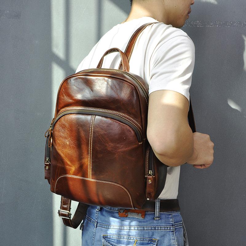 Design: Simple BROWN LEATHER MEN'S College Backpack Travel Backpack Leather Backpack For Men