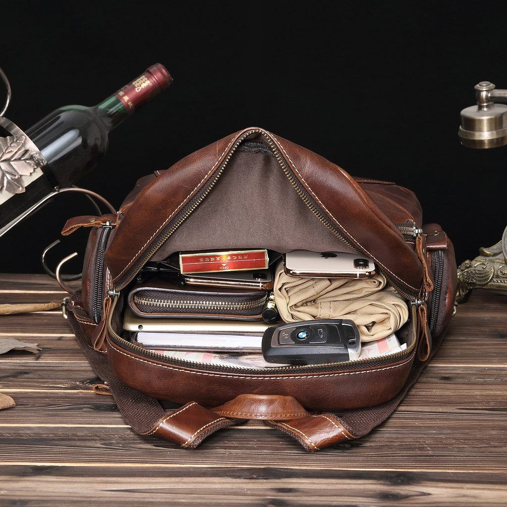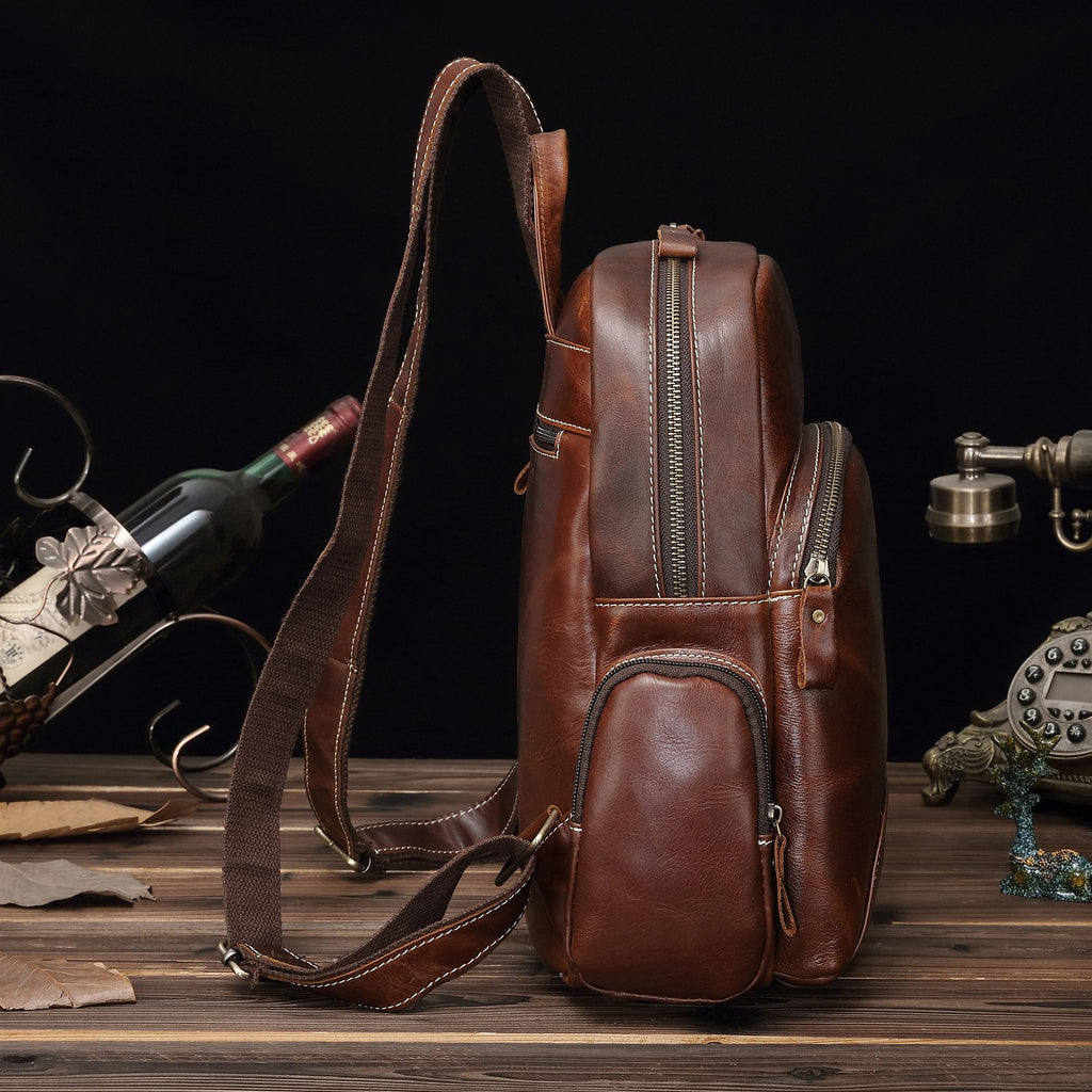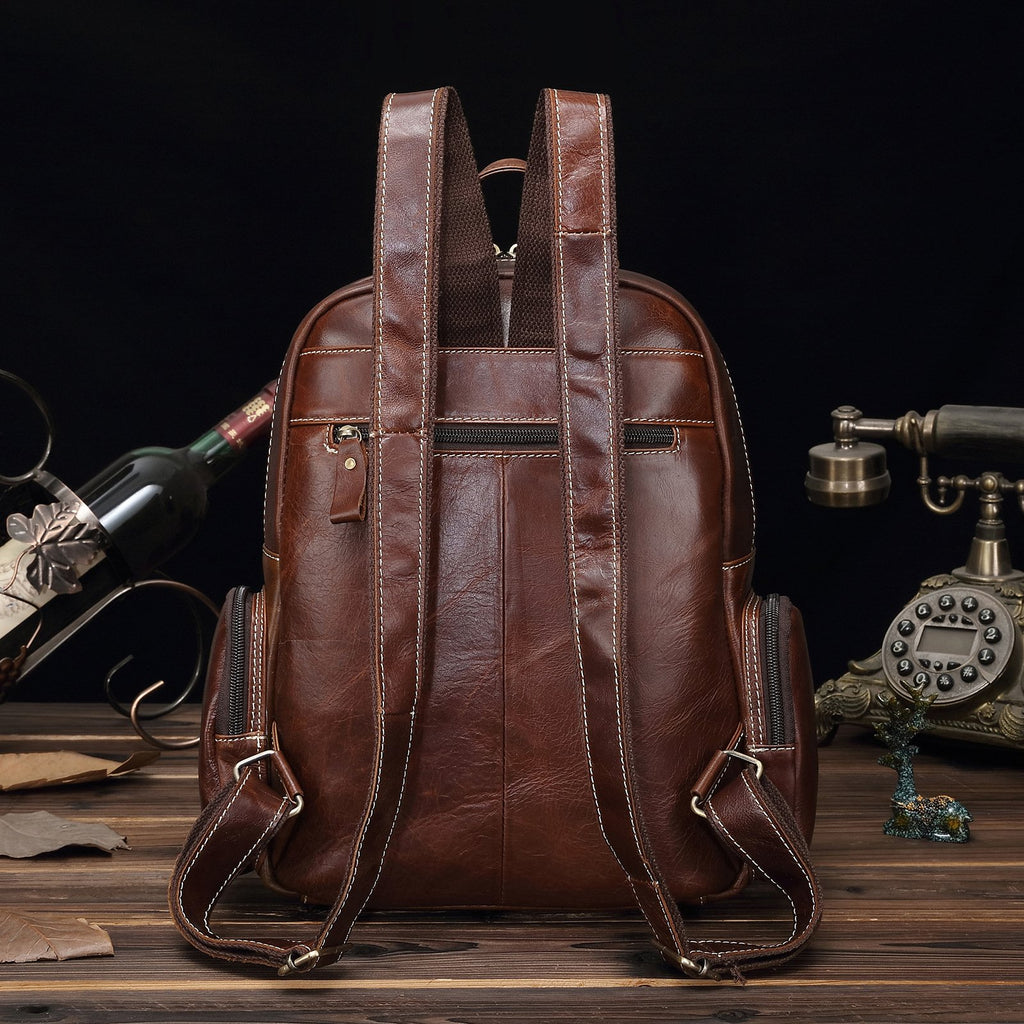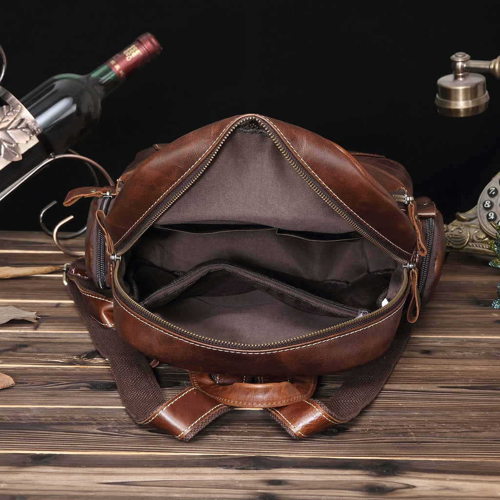 Design: Simple BROWN LEATHER MEN'S College Backpack Travel Backpack Leather Backpack For Men