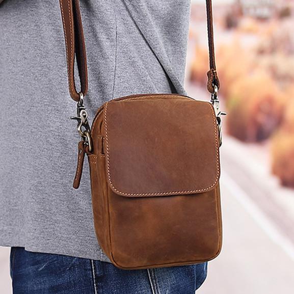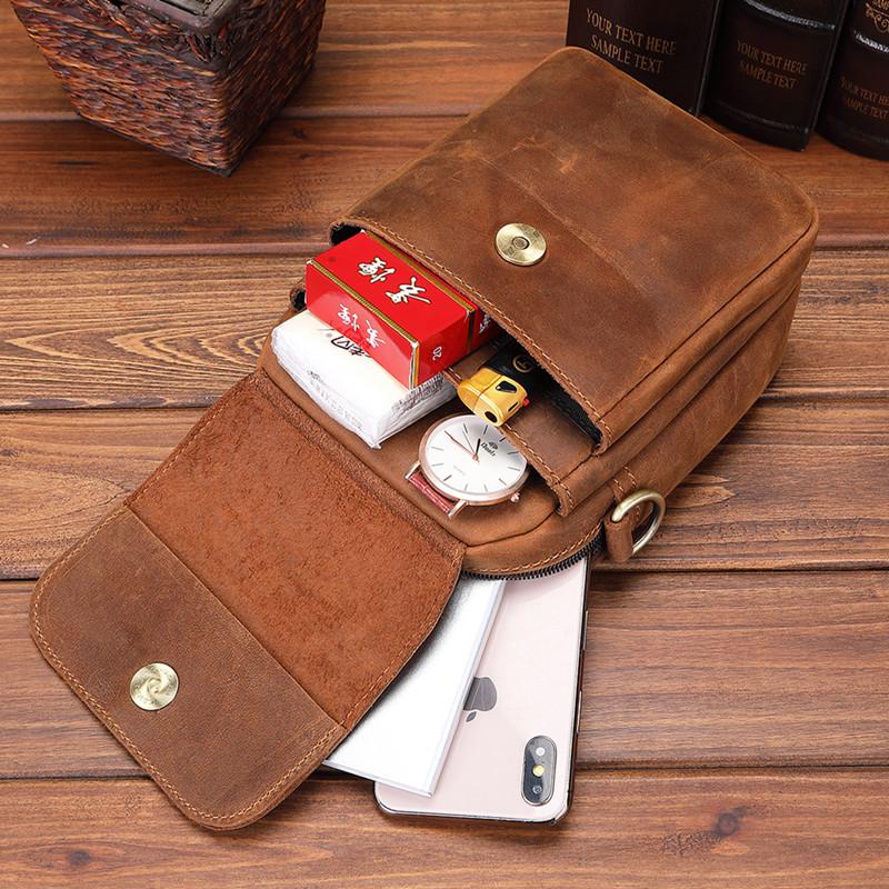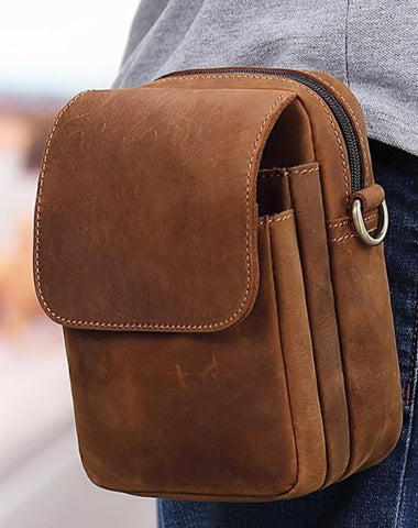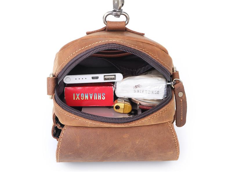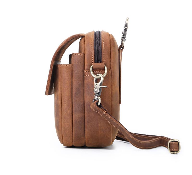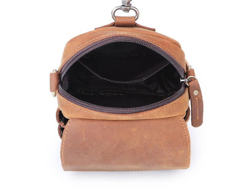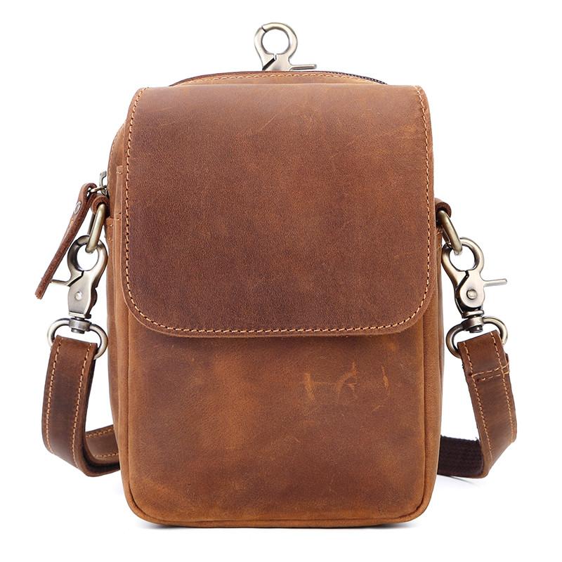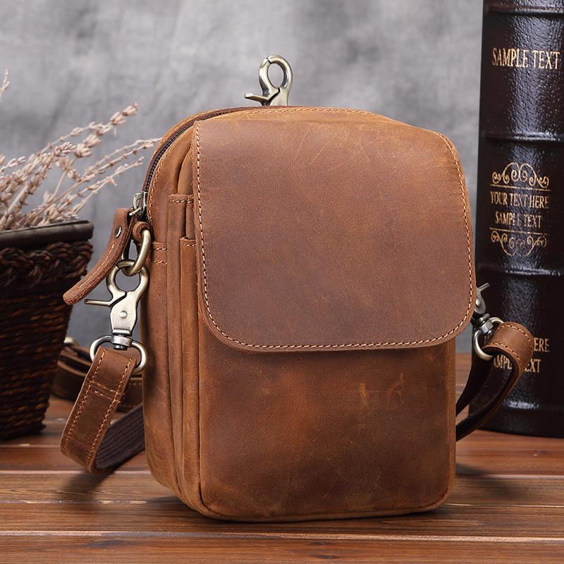 Style: BROWN LEATHER MENS Belt Pouch Belt Bag Waist Bag Mini Side Bag Phone Bag For Men