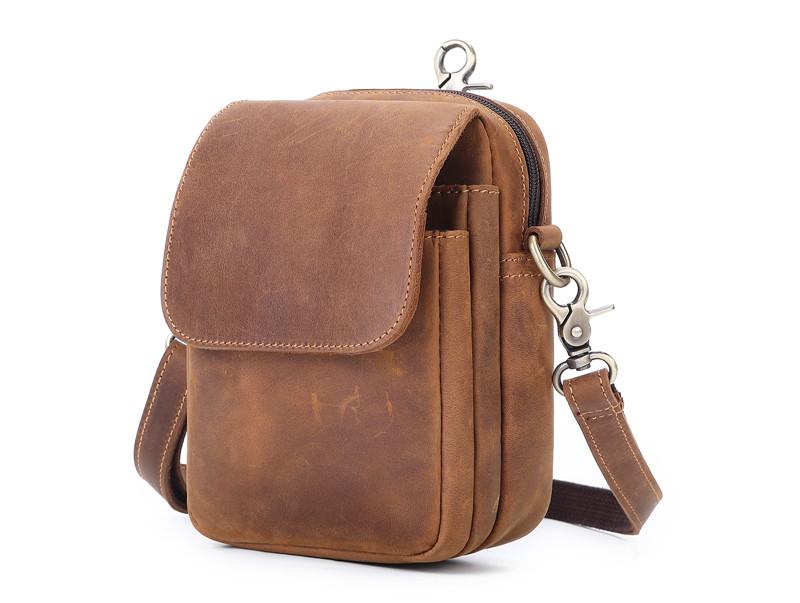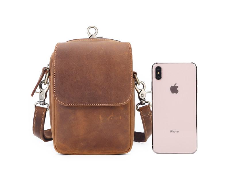 Design: BROWN LEATHER MENS Belt Pouch Belt Bag Waist Bag Mini Side Bag Phone Bag For Men
