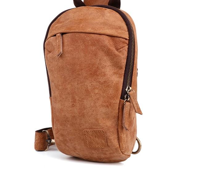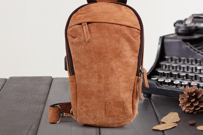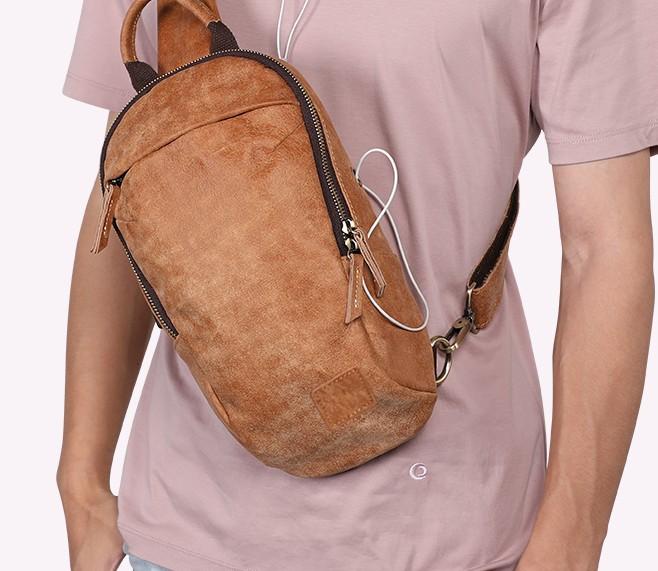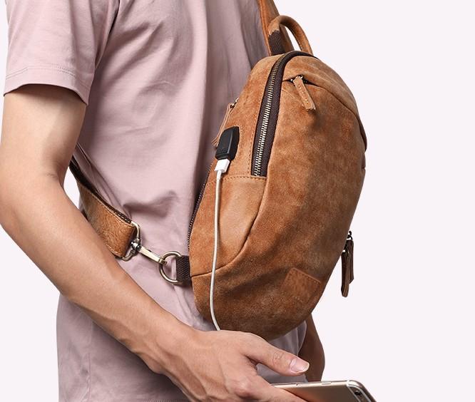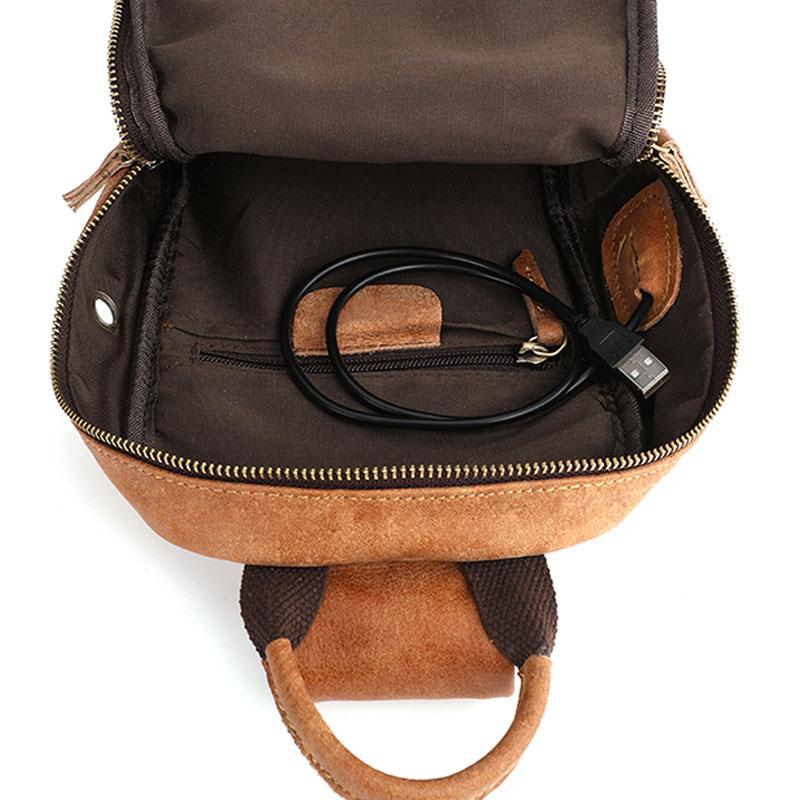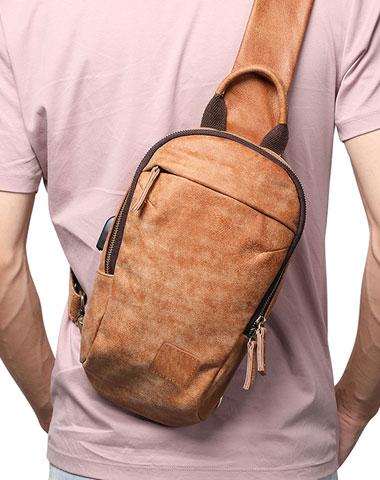 Style: Cool Brown Mens Leather One Shoulder Backpack Chest Bag Sling Bag For Men