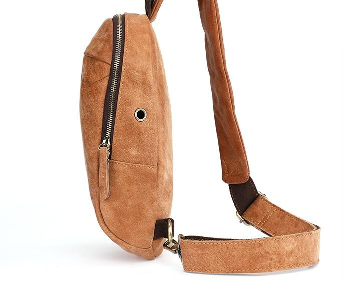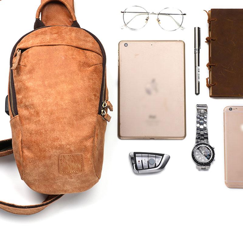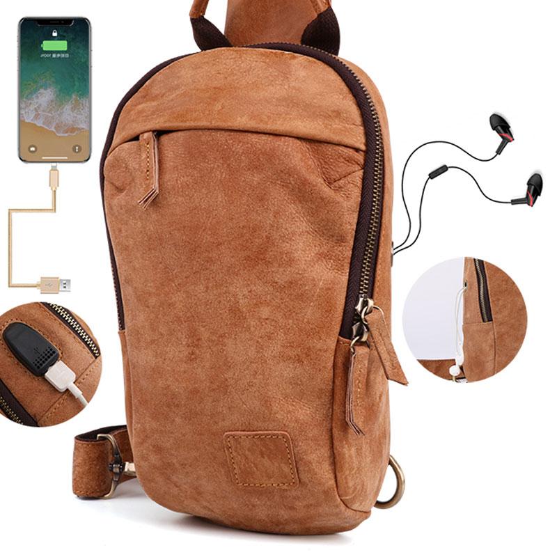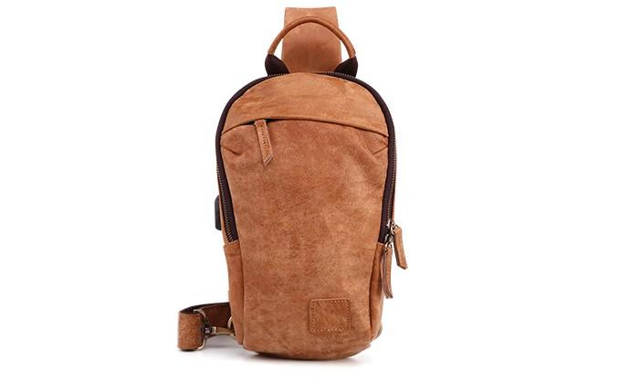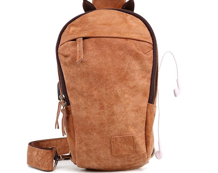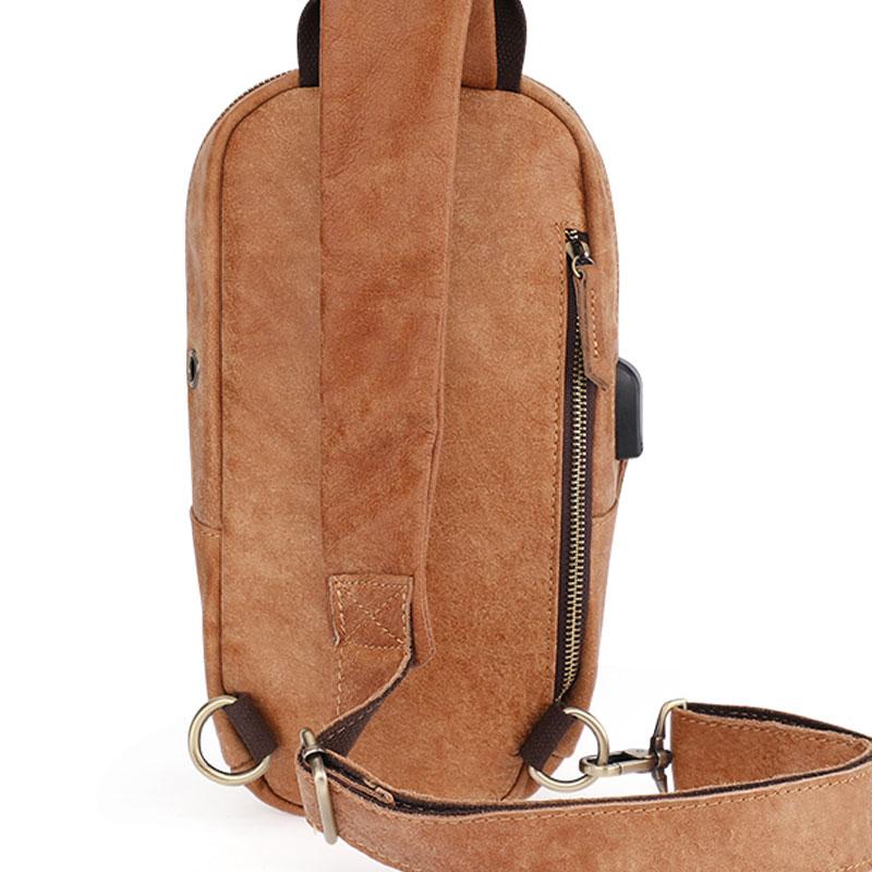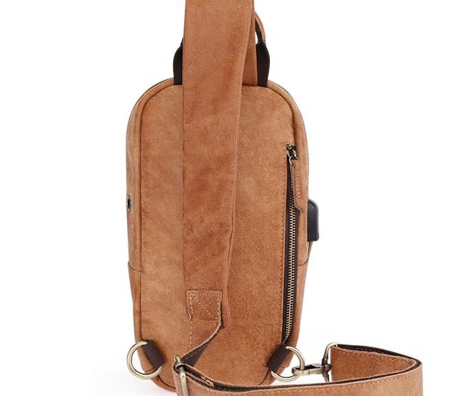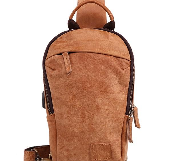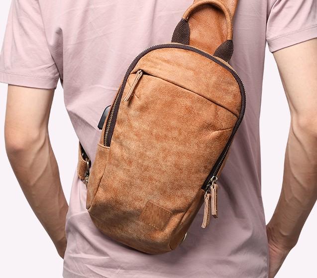 Design: Cool Brown Mens Leather One Shoulder Backpack Chest Bag Sling Bag For Men