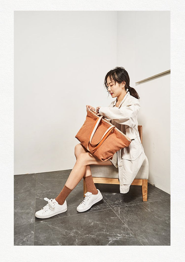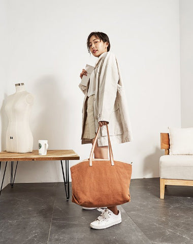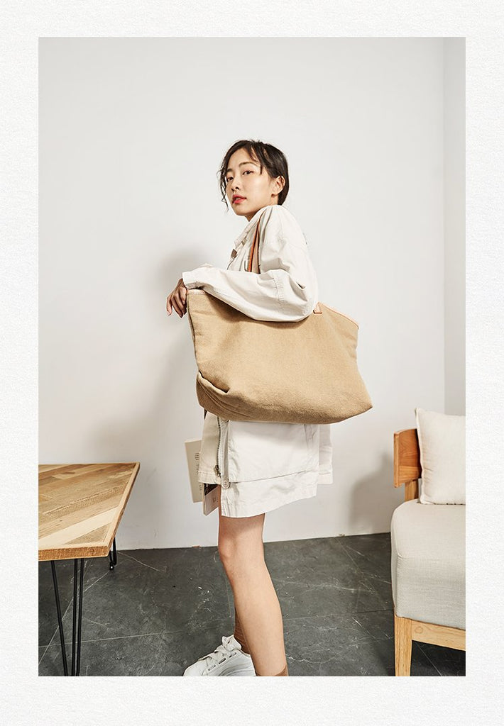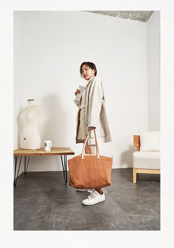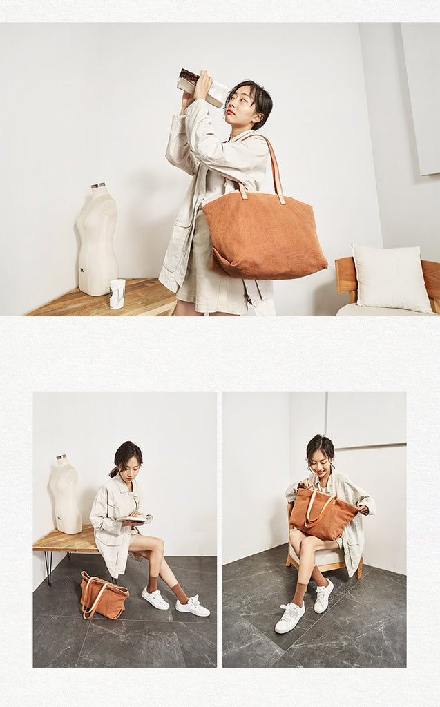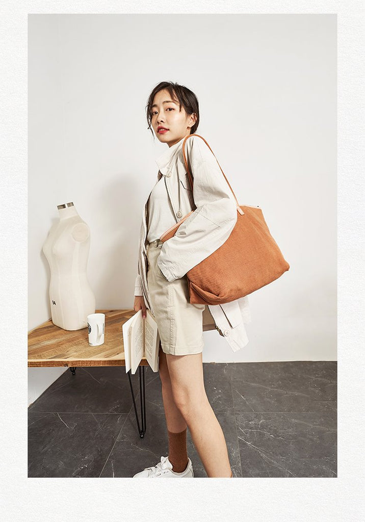 Design: Simple Canvas Leather Mens Tote Bag Orange Messenger Bags Handbag Canvas Tote Shoulder Bag for Men Women