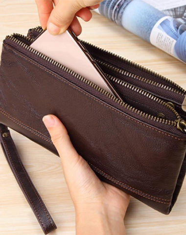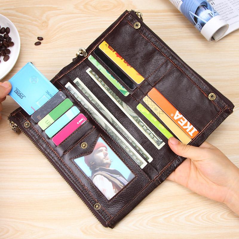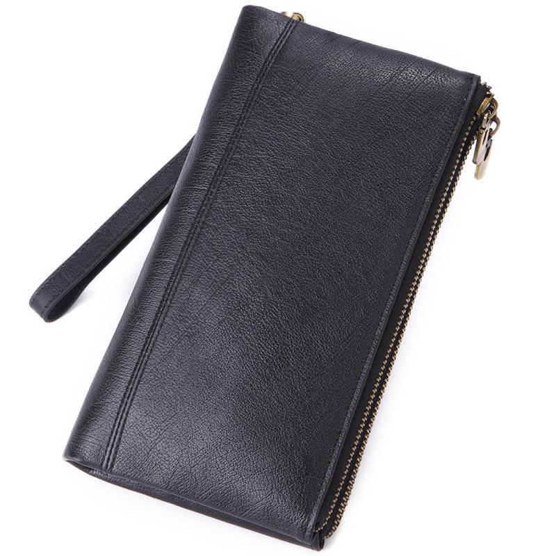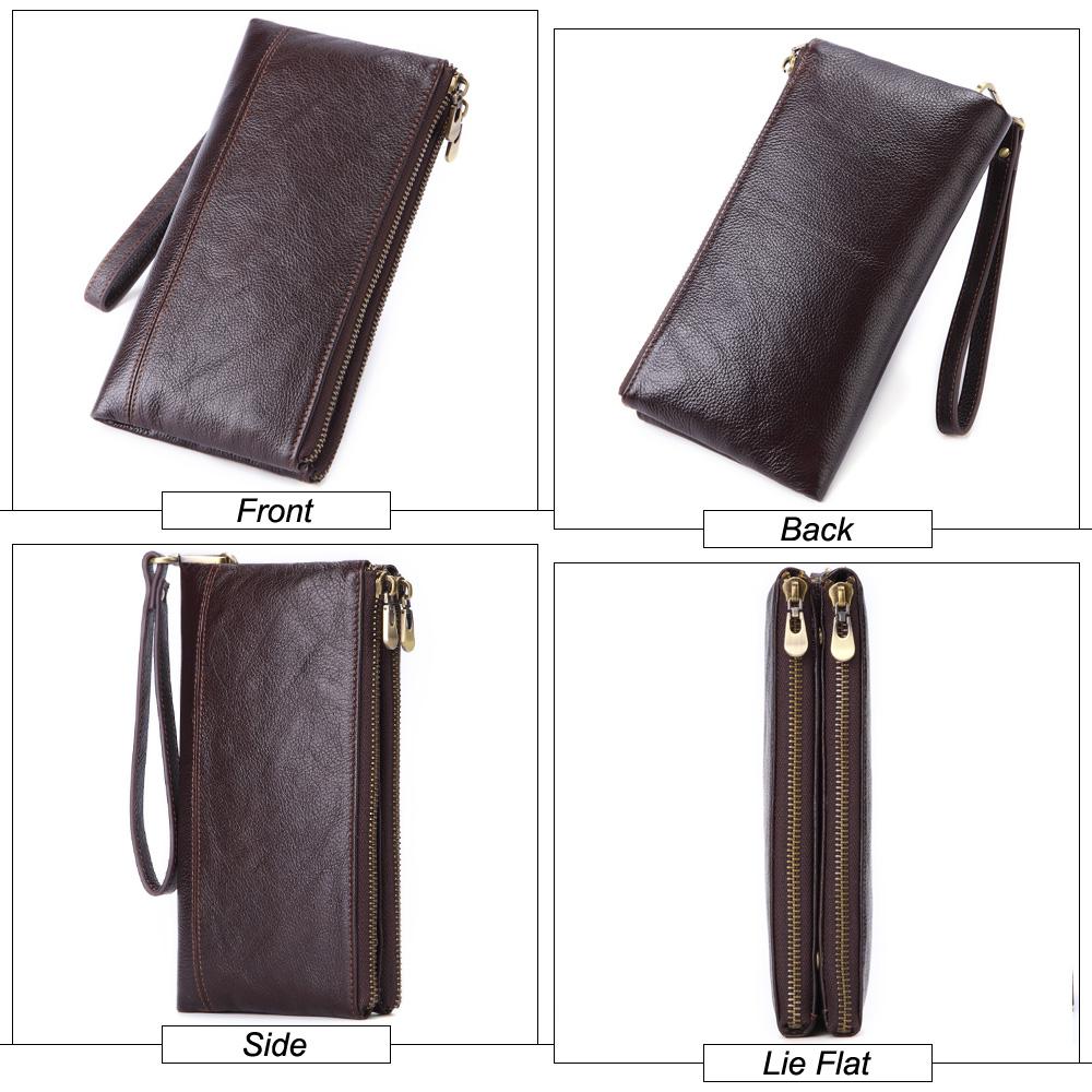 Style: Fashion Black Leather Men's Bifold Long Wallet Brown Wristlet Wallet Clutch Wallet For Men