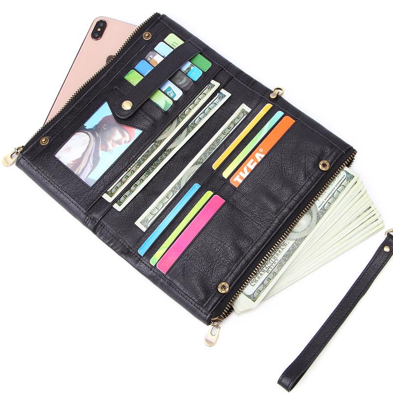 Slots: 2 full size bill slot, 11 card holders, 1 license Slot, 2 zipper slots