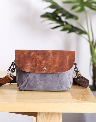 Design: Simple Casual Waxed Canvas Leather Mens Womens Side Bag Shoulder Bag Messenger Bag for Men