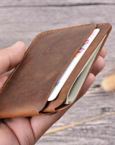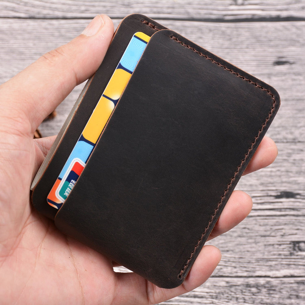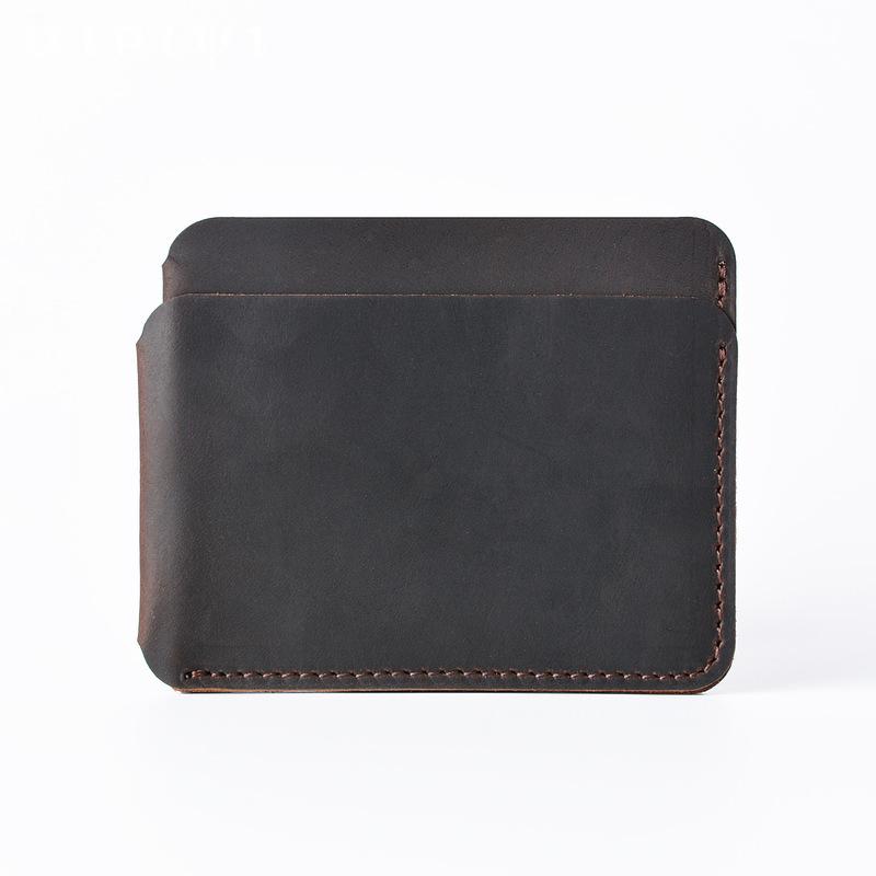 Design: Vintage Brown Leather Men's Front Pocket Wallet Black Slim Card billfold Wallet Small Wallet For Men
