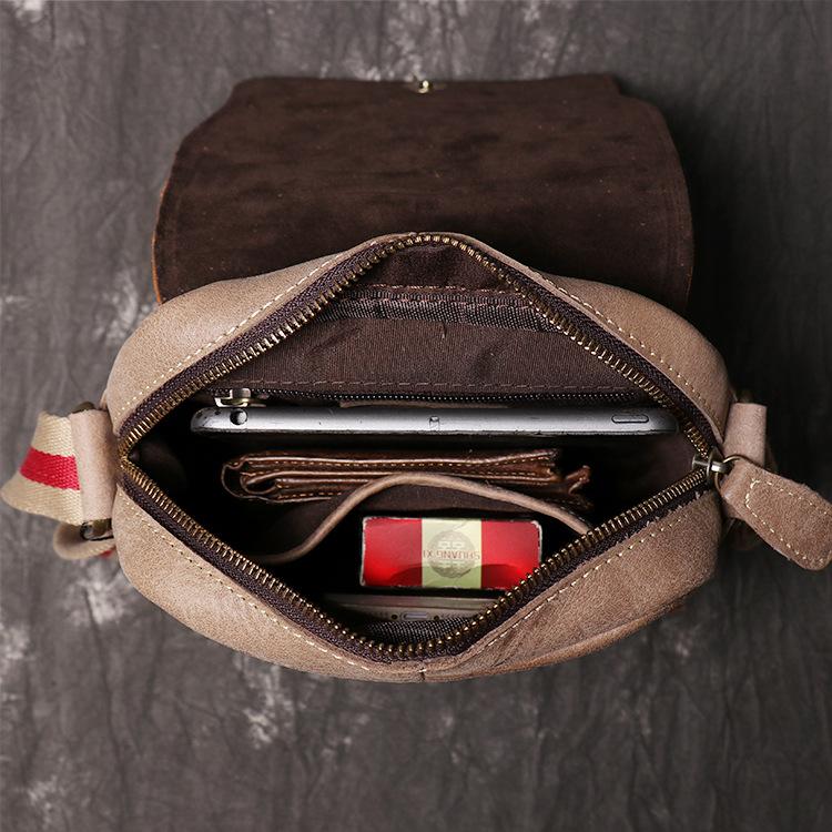 Style: Simple Khaki Brown LEATHER Mens Vertical SIDE BAG COURIER BAG Vertical MESSENGER BAG FOR MEN