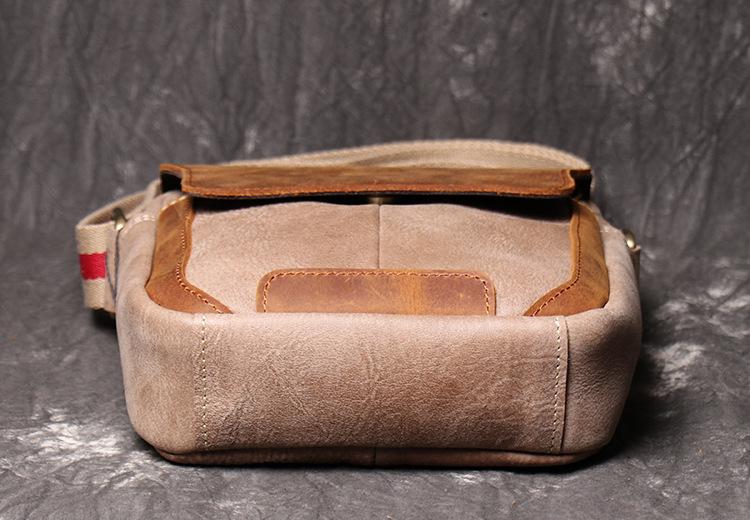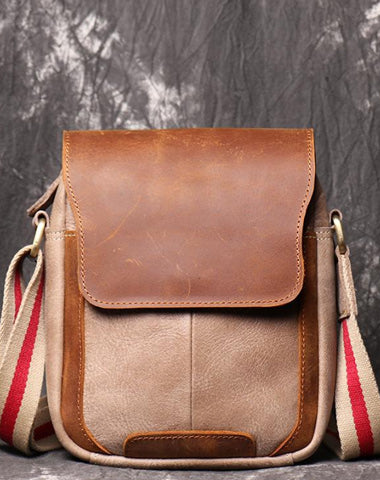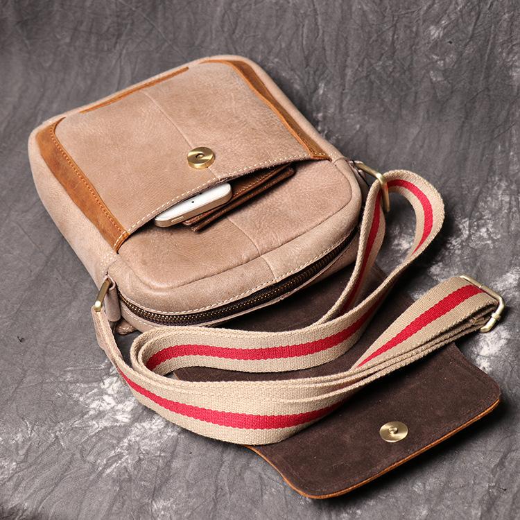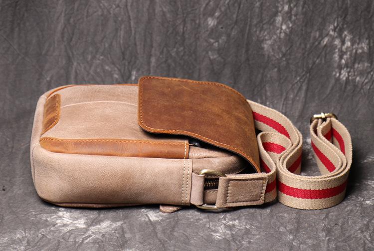 Design: Simple Khaki Brown LEATHER Mens Vertical SIDE BAG COURIER BAG Vertical MESSENGER BAG FOR MEN