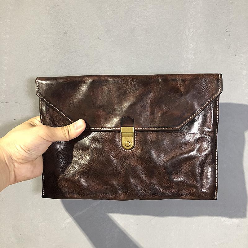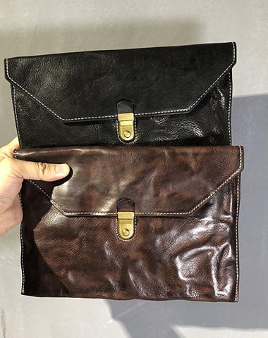 Design: Simple Leather Black Mens 10 inches Clutch Bag Zipper Womens Brown Clutch Wallet Hand Bag for Men