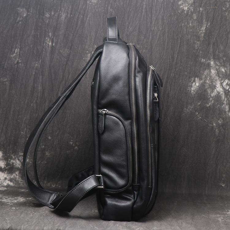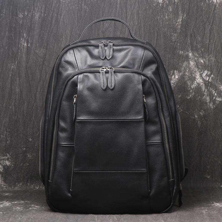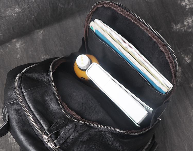 Design: Black Leather Men's 14inch Computer Backpack Travel Backpack College Backpack For Men