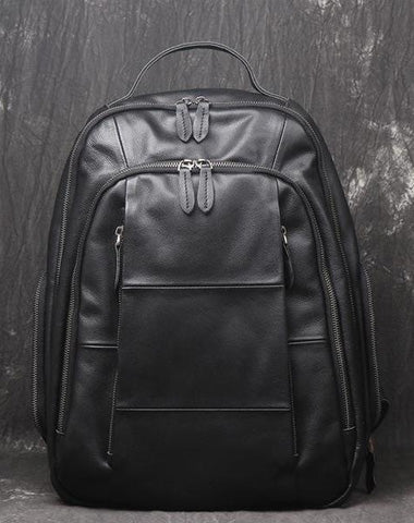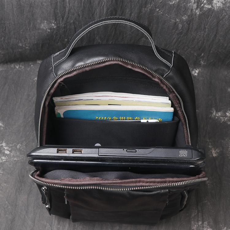 Design: Black Leather Men's 14inch Computer Backpack Travel Backpack College Backpack For MenOverview: