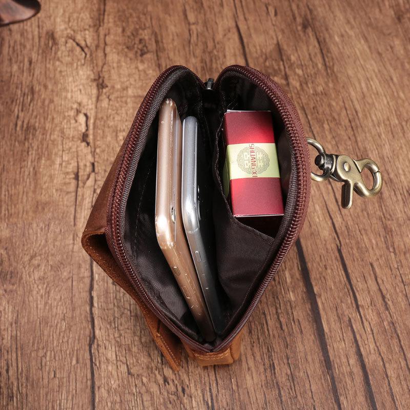 Design: Small Mens Leather CELL PHONE HOLSTER Belt Bag Belt Pouch Waist Bag For MenOverview: