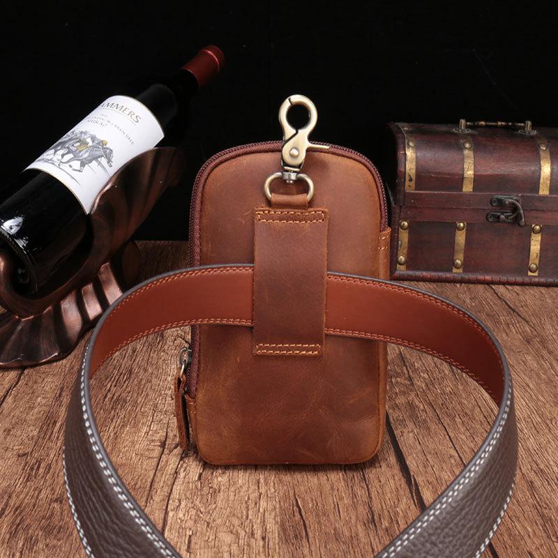 Design: Small Mens Leather CELL PHONE HOLSTER Belt Bag Belt Pouch Waist Bag For Men