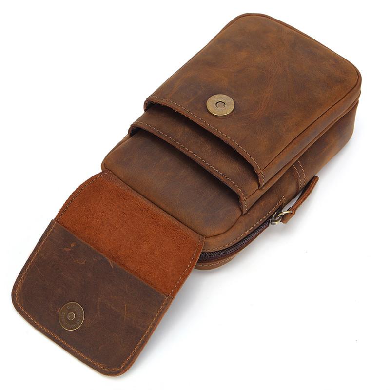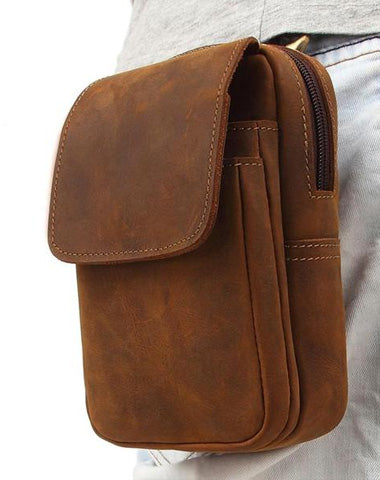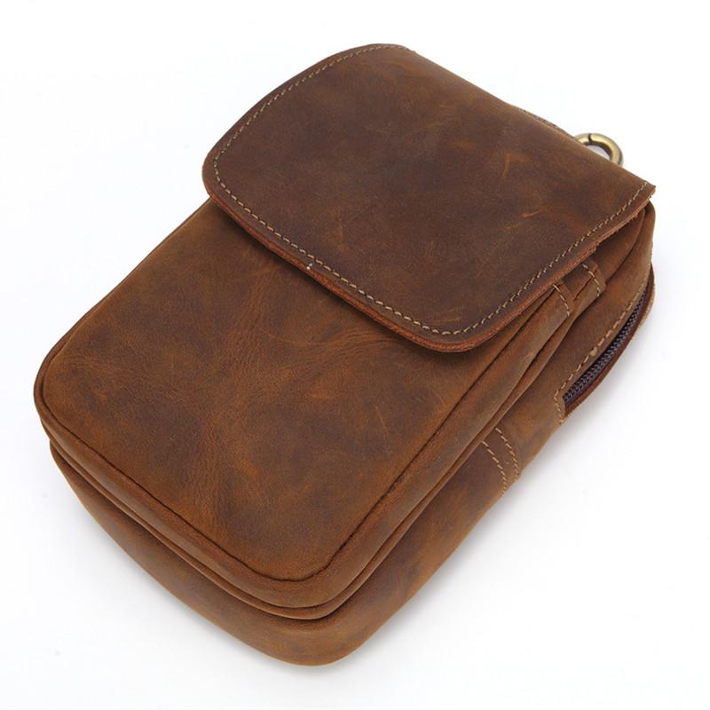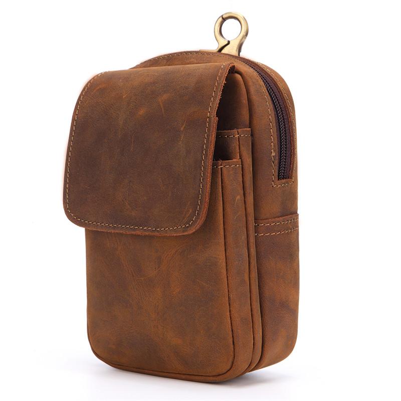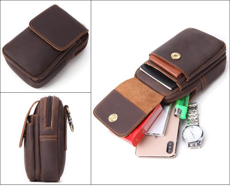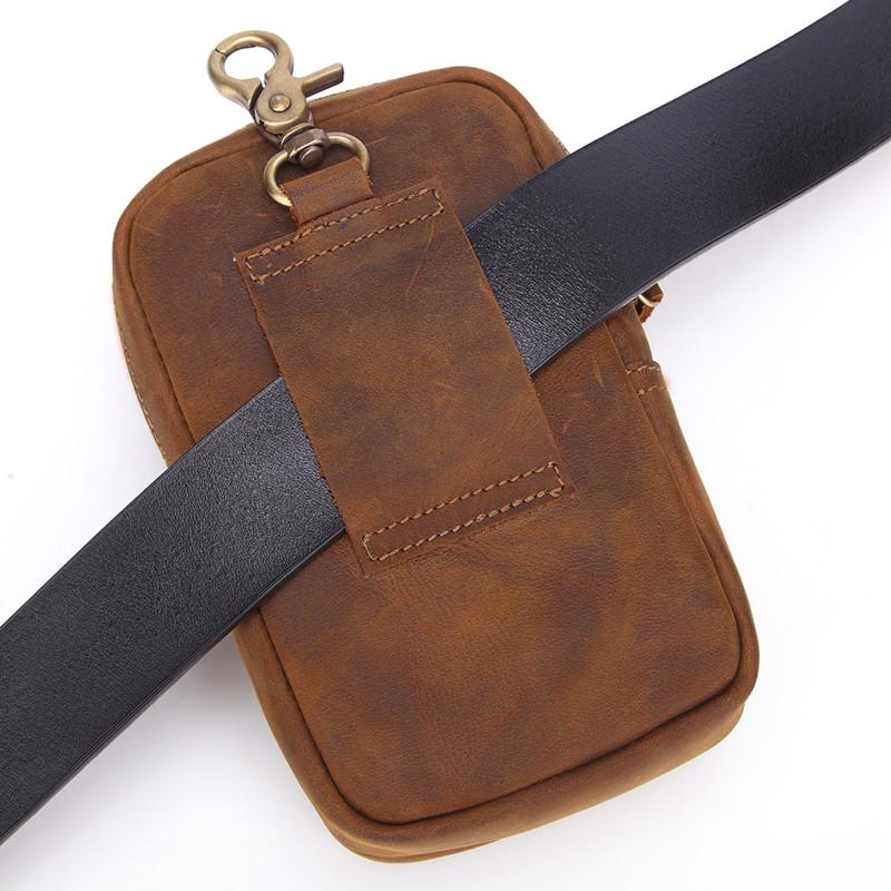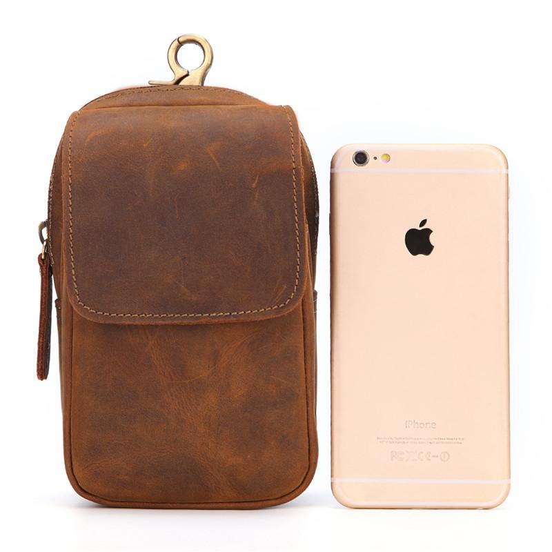 Design: Cool Brown Leather Men's Cell Phone Holster Brown Belt Bag Belt Pouch For Men