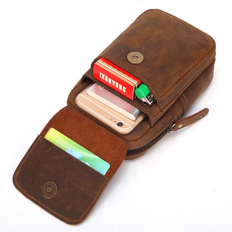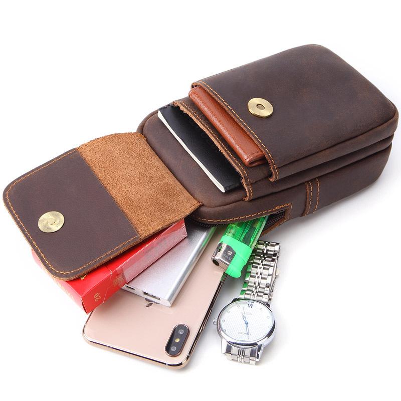 Style: Cool Brown Leather Men's Cell Phone Holster Brown Belt Bag Belt Pouch For Men