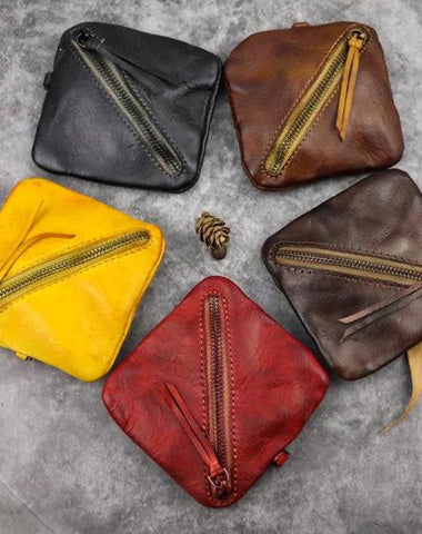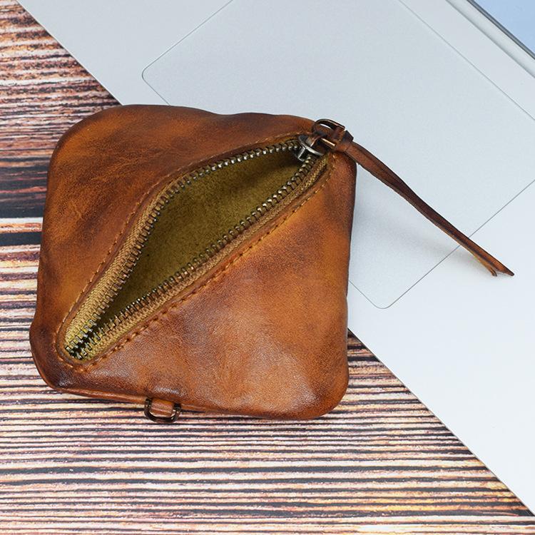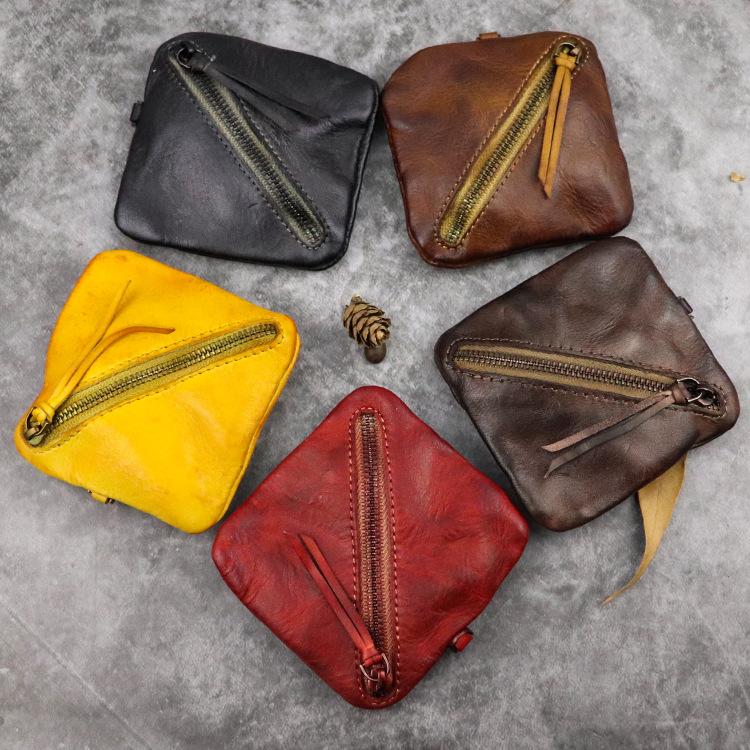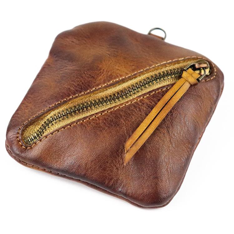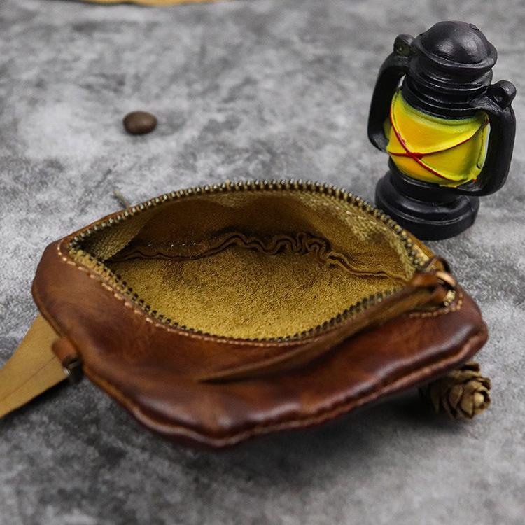Vintage Small Leather Men's Coin Holder Change Wallet Change Holder For Men