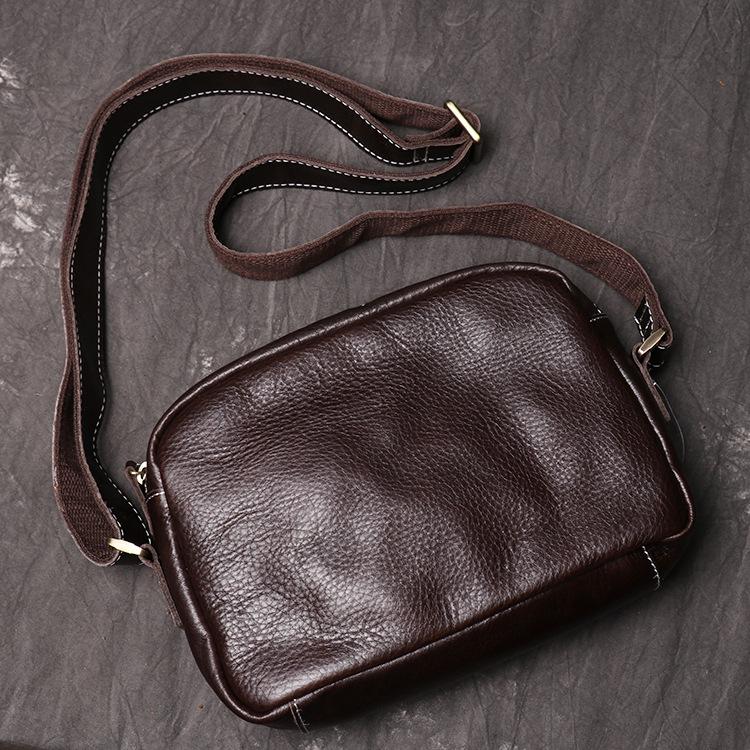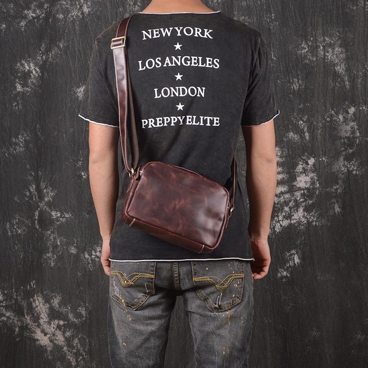 Design: Vintage Small Brown Leather Men's Side Bag Black Courier Bag Messenger Bag For MenOverview:
