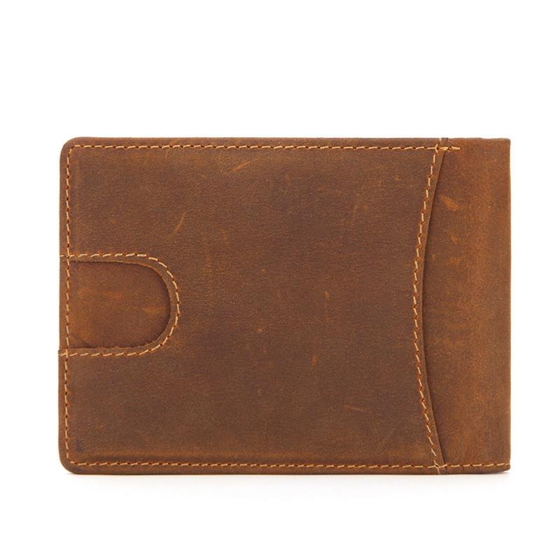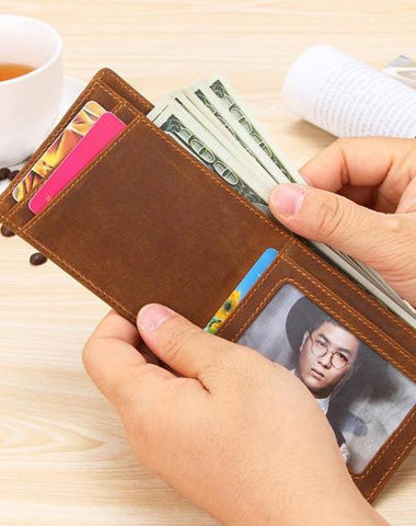Design: Vintage Brown Leather Men's Slim Small Bifold Wallet Front Pocket billfold Wallet For Men