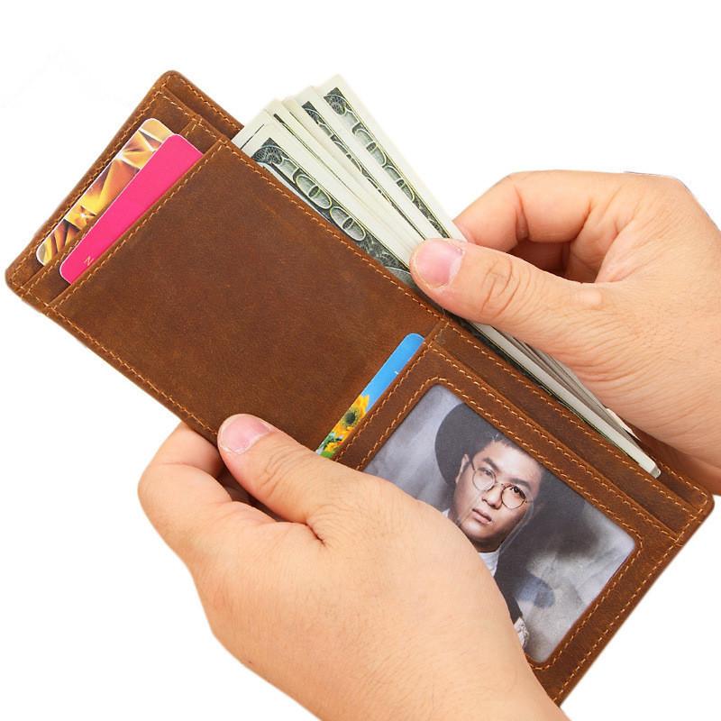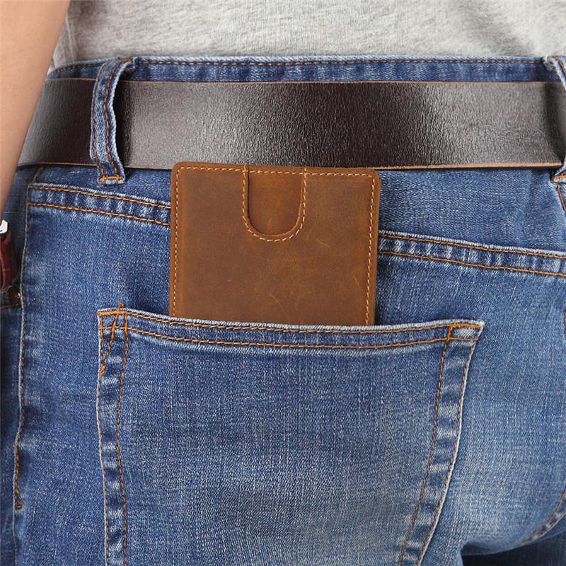 Style: Vintage Brown Leather Men's Slim Small Bifold Wallet Front Pocket billfold Wallet For Men