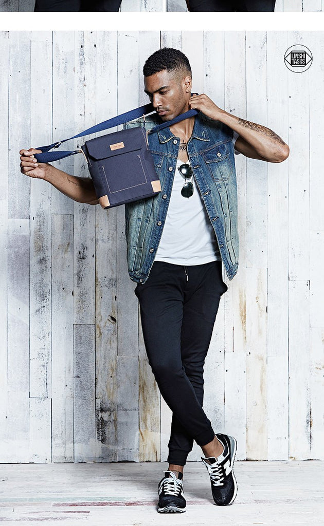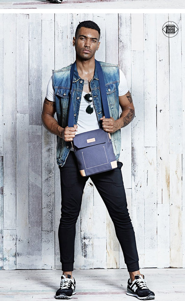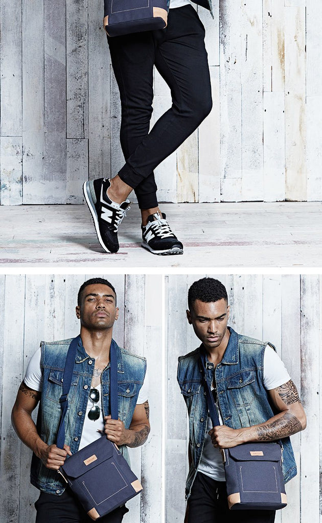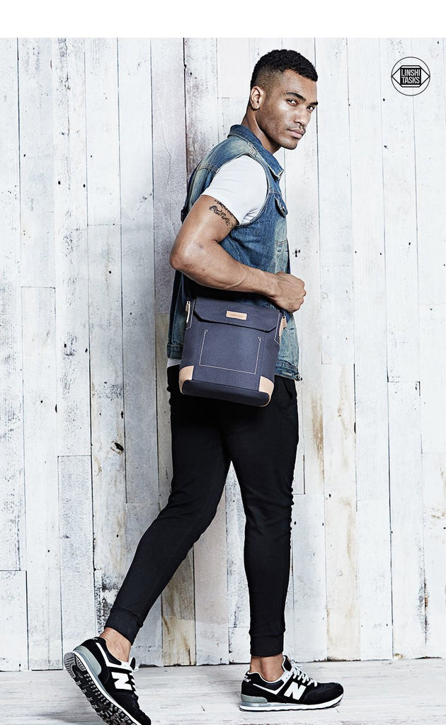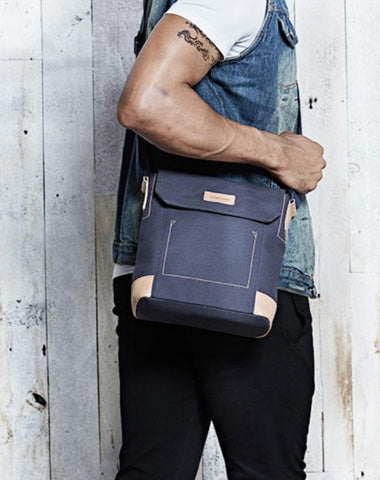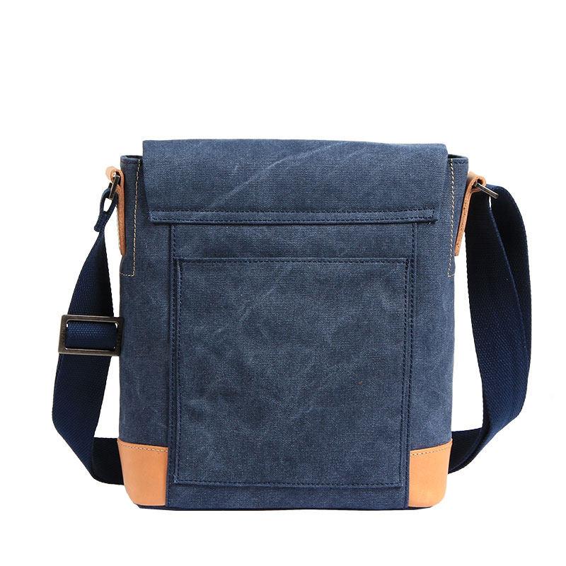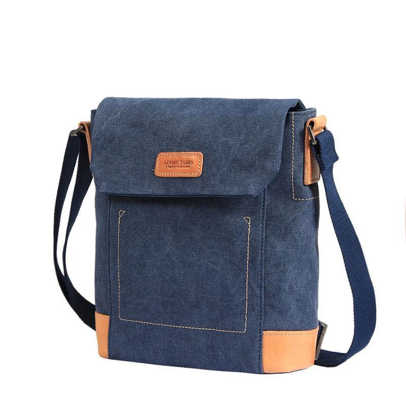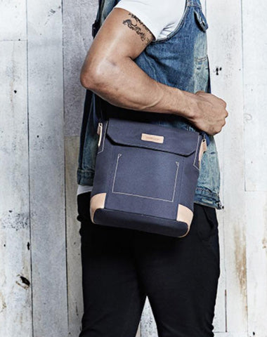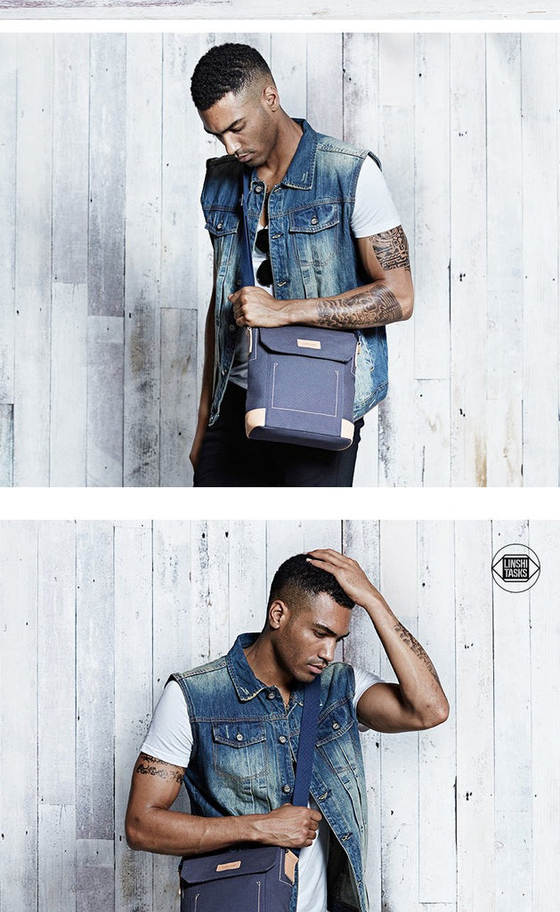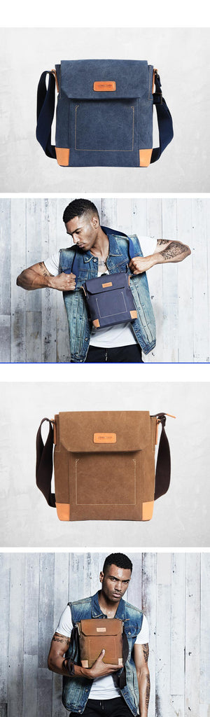 Design: Canvas Leather Mens Vertical Side Bag Small Messenger Bags Khaki Canvas Courier Bags for Men