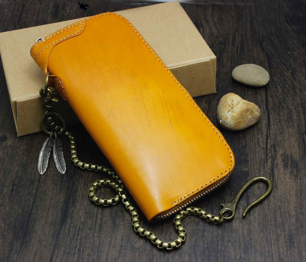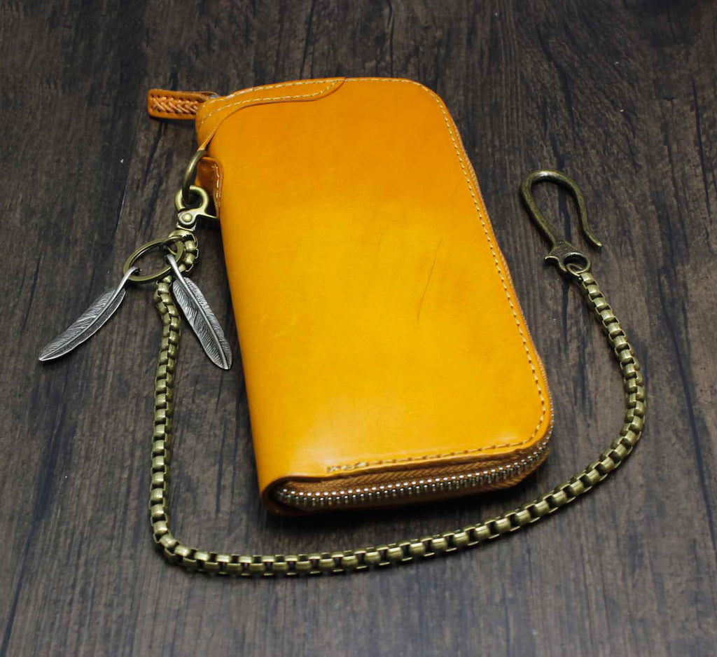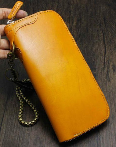 Design: Cool Brown Leather Men's Biker Wallet Biker Chain Wallet Zipper Long Wallet with Chain For Men