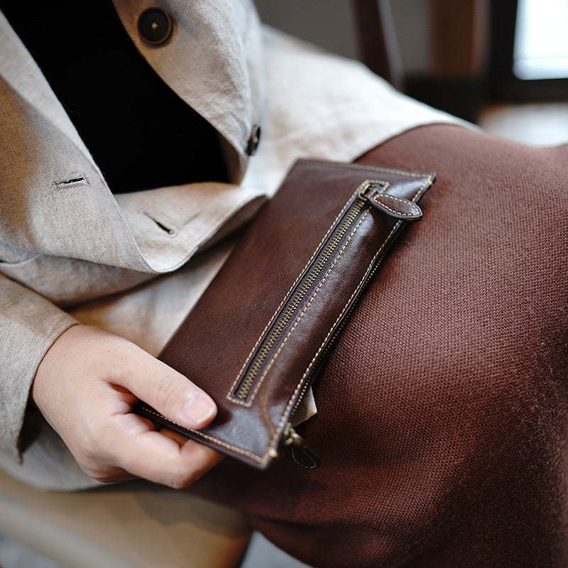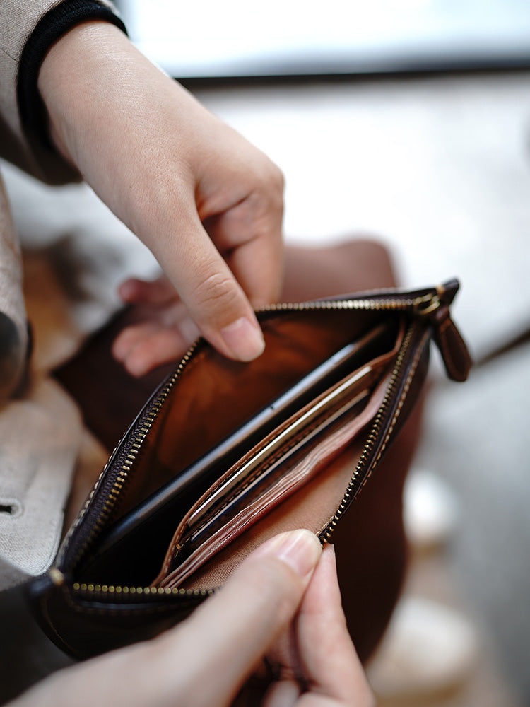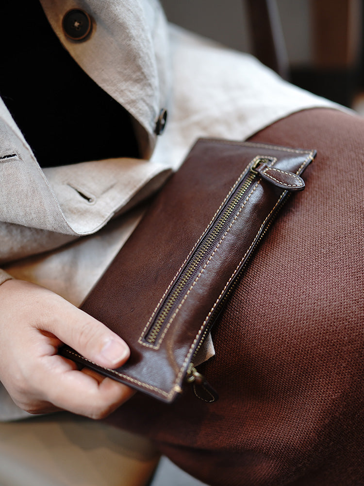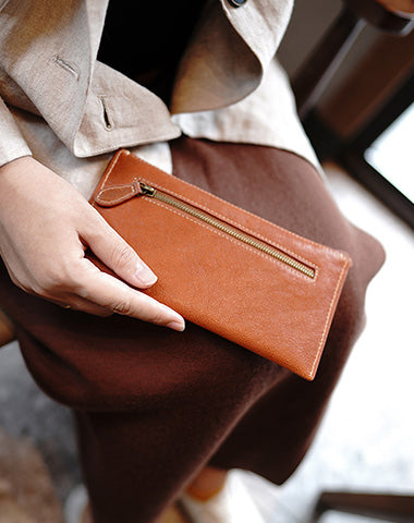 Slim Coffee Leather Clutch Wallet Womens Zip Wallets Coffee Ladies Zipper Clutch Wallet for Women