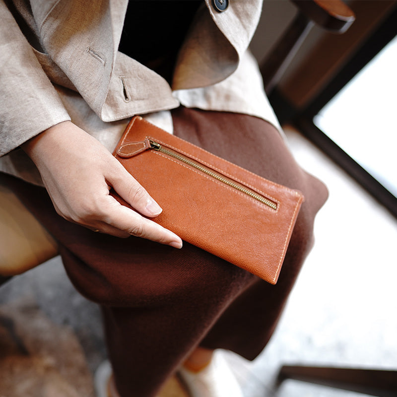 Style: Slim Leather Clutch Wallet Womens Zip Wallets Ladies Zipper Clutch Wallet for Women