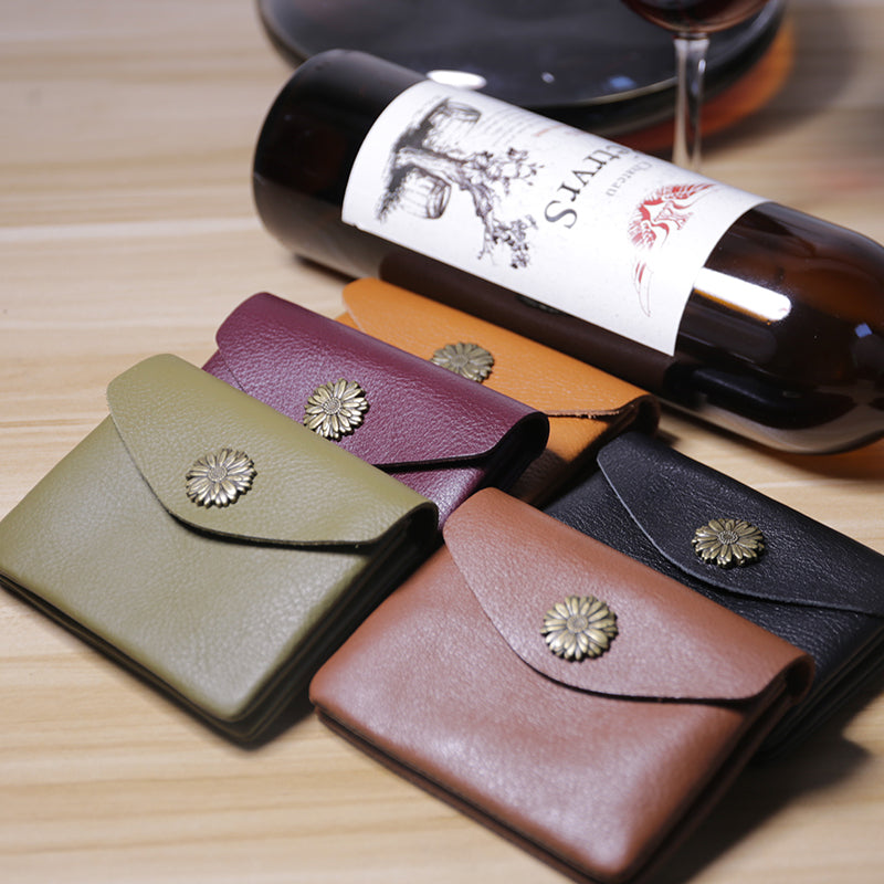 Style: Slim Women Black Sunflower Leather Card Wallet Minimalist Envelope Card Holder Wallet Coin Wallet For Women