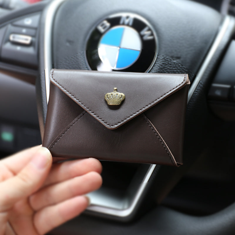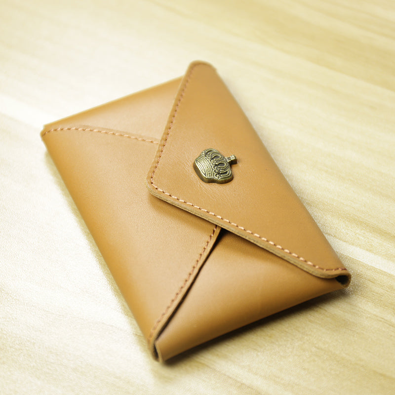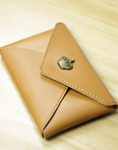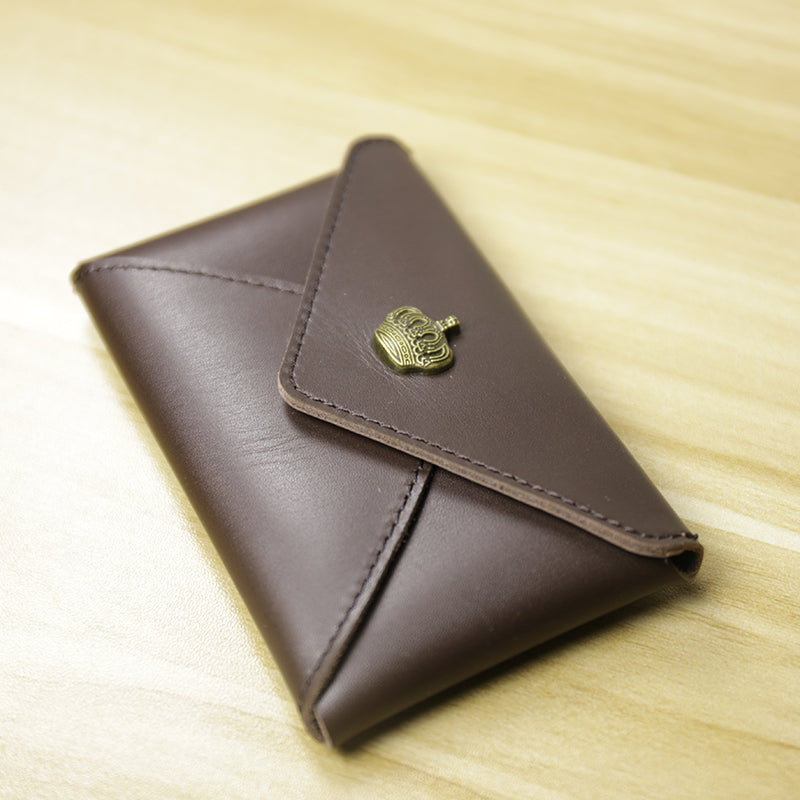 Slim Women Coffee Crown Leather Card Wallet Minimalist Envelope Card Holder Wallet Coin Wallet For Women