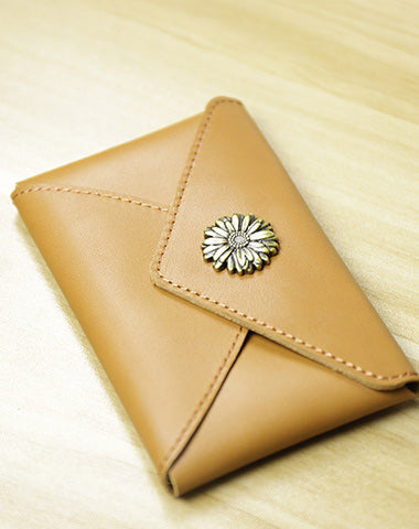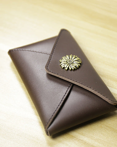 Design: Slim Women Coffee Leather Card Wallet Minimalist Envelope Card Holder Wallet Coin Wallet For Women