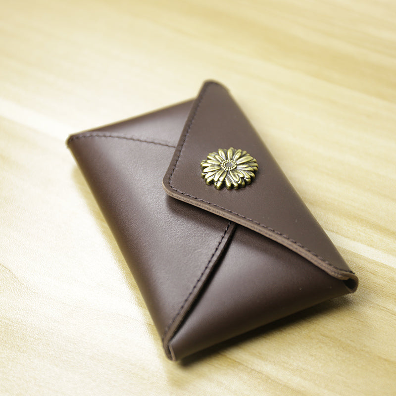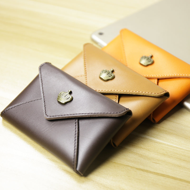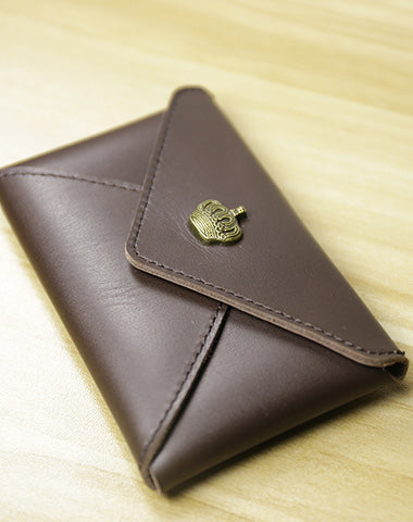 Design: Slim Women Coffee Leather Card Wallet Minimalist Envelope Card Holder Wallet Coin Wallet For Women