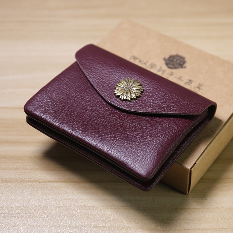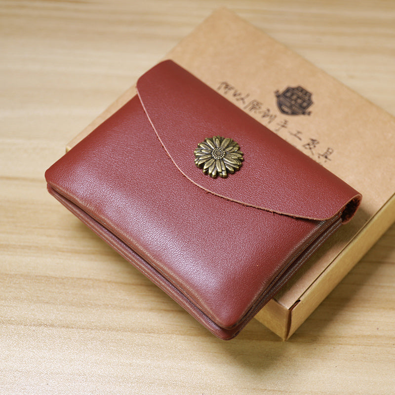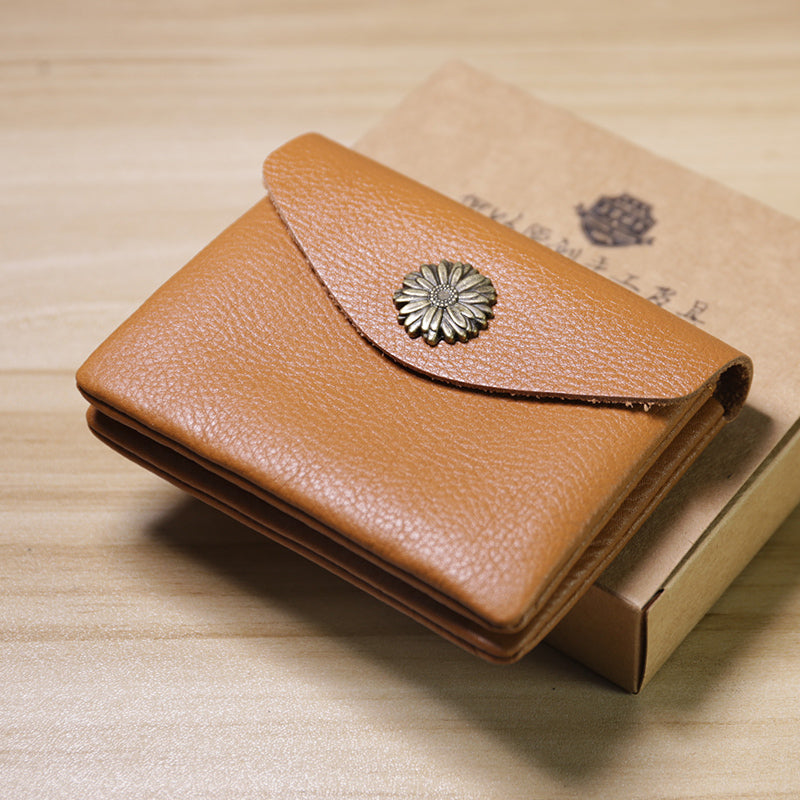 Slim Women Coffee Sunflower Leather Card Wallet Minimalist Envelope Card Holder Wallet Coin Wallet For Women