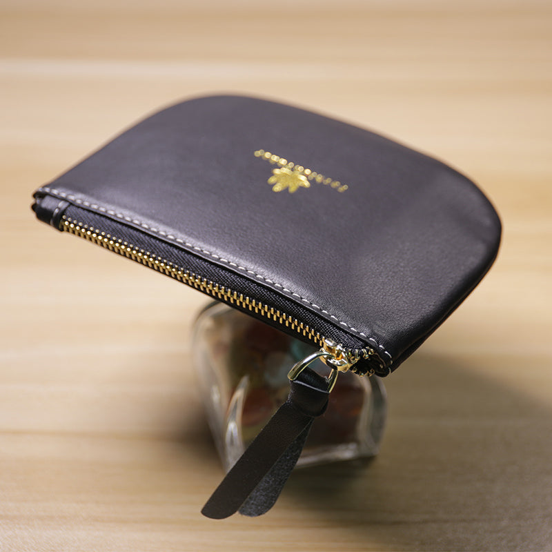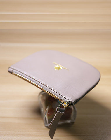 Design: Slim Women Gray Leather Zip Card Wallet Saddle Minimalist Coin Wallet Small Zip Change Wallet For Women