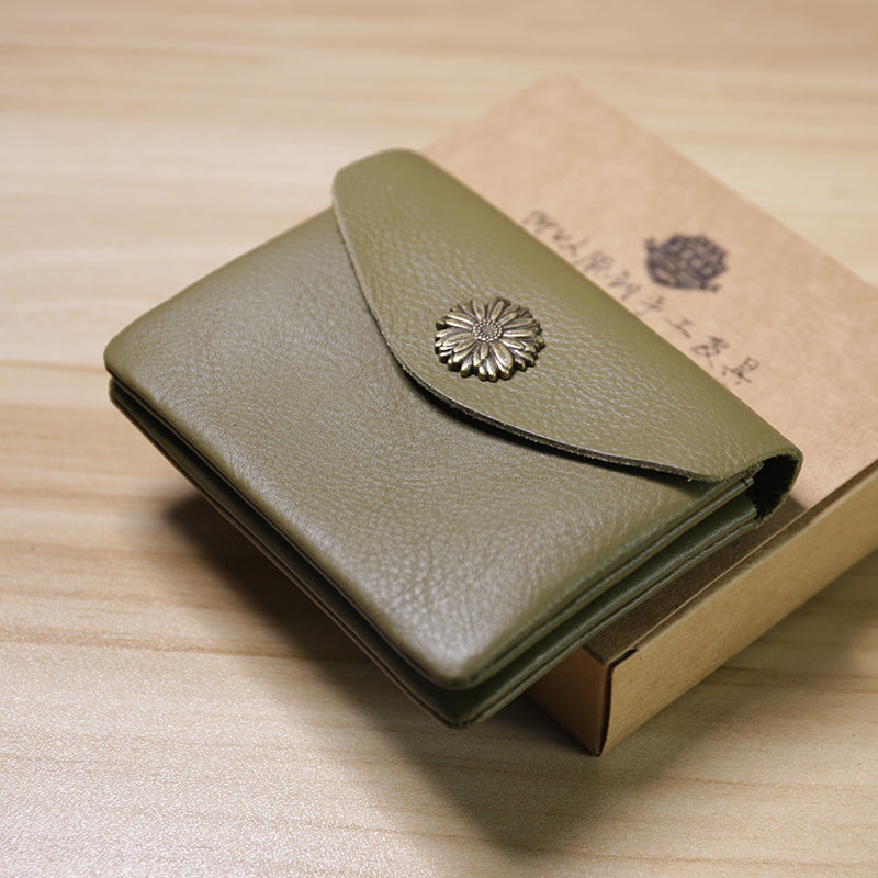 Style: Slim Women Sunflower Leather Card Wallet Minimalist Envelope Card Holder Wallet Coin Wallet For Women